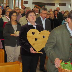 Beim Erntedank wurde der vielen Gaben Aufmerksamkeit geschenkt, die uns jedes Jahr erfreuen und die unser Leben wertvoll machen. Unter der Erntekrone standen Früchte und Blumen, aber auch ein Herz für uns nahestehende Menschen, Wasser für die Begleitung von Menschen in schwierigen Zeiten, sowie Brot und Weintrauben als Symbole für Jesu Zuwendung in den Zeichen von Brot und Wein. Dankbarkeit für die Gemeinschaft in der Pfarre wurde ebenfalls zum Ausdruck gebracht. Der Chor und eine Musikantengruppe umrahmten die Feier musikalisch.