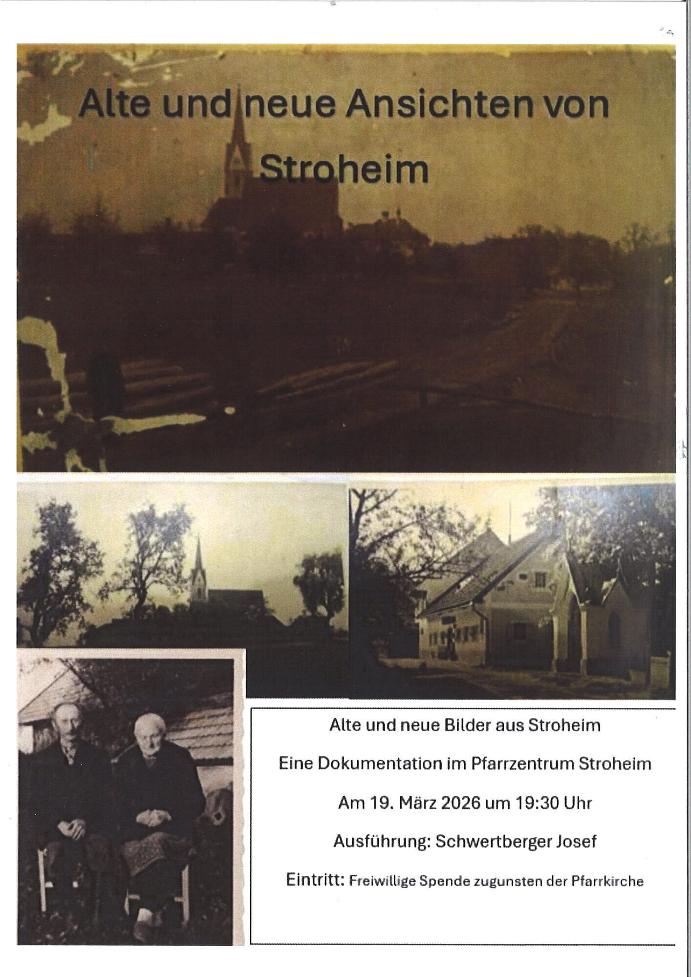 Alte und neue Ansichten von Stroheim Eine Dokumentation im Pfarrzentrum Stroheim am 19. März 2026 um 19:30 Uhr. Eintritt: Freiwillige Spende zugunsten der Pfarrkirche. mehr: Alte und neue Ansichten von Stroheim