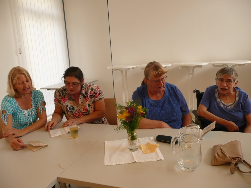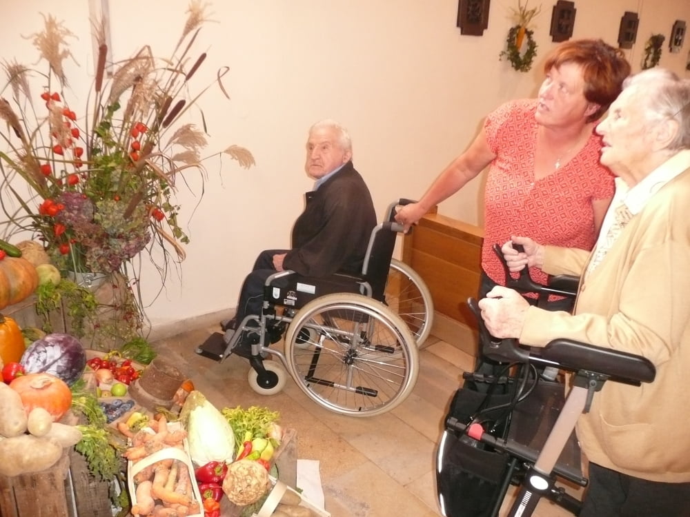 Mit Behindertenbussen und Privatautos wurden die BewohnerInnen von ihren Heimen abgeholt. Nach einer Andacht in der "erntedankgeschmückten" Kirche waren alle zu einer Kaffeejause im neuen Pfarrzentrum eingeladen. Beim miteinander Plaudern und Singen verging der Nachmittag viel zu schnell.