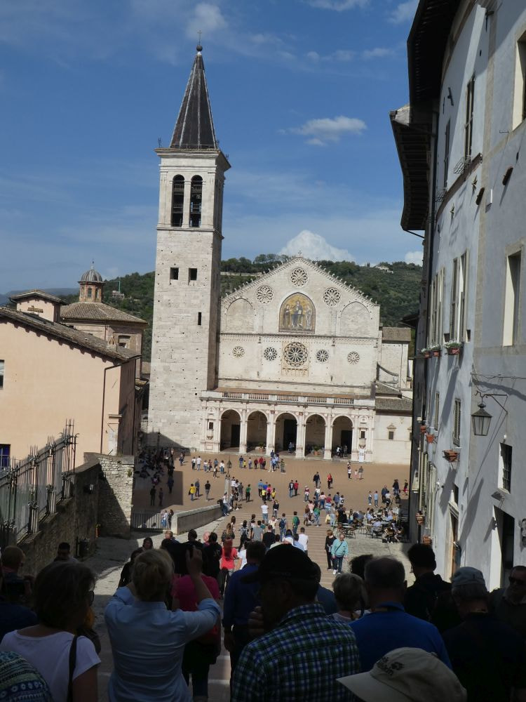 Dort besuchten wir in den folgenden Tagen u. a. San Damiano, Santa Chiara und natürlich San Francesco. Großen Eindruck hinterließ die Messfeier in der 1000 Jahre alten Kirche San Giacomo al Murorupto. Das Eremo delle Carceri am Fuß des Monte Subiasio erreichten wir mit Taxis, zurück ging es für einen Großteil der Gruppe zu Fuß.