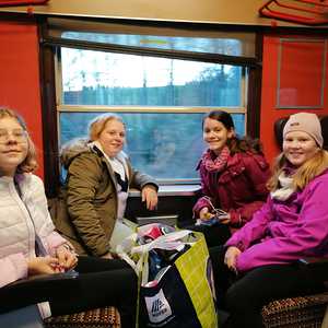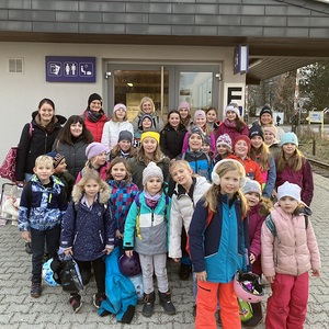 Lustig dorthin war schon die Zugfahrt und die Nervosität war groß, schließlich standen viele Kinder das erste Mal auf Schlittschuhen.