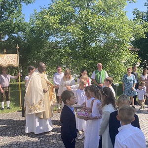 Begleitet von den Erstkommunionkindern, den Ministranten, unserem Priester Juventus, den Goldhaubenfrauen, dem Kirchenchor, der Musikkapelle, der Feuerwehr und der gesamten Pfarrbevölkerung konnten wir so bei herrlichem Wetter unser Fronleichnamsfest am Sonntag, den