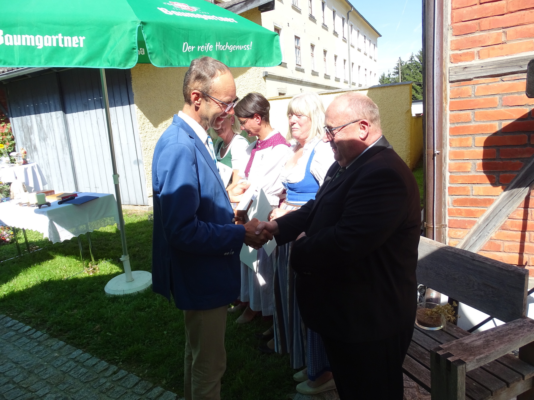 Wie jedes Jahr umrahmte die Musikkapelle den Gottesdienst und anschließend den Frühschoppen und unsere Goldhaubenfrauen bereiteten in mühevoller Kleinarbeit Kräuterbüscherl vor, die dann im Gottesdienst gesegnet und im Anschluss an den Gottesdienst unter den Gottesdienstbesuchern verteilt wurden. Über den Erlös der Kräuterbüscherl Aktion durfte sich übrigens die Pfarre freuen, denn die stolze Summe in Höhe von EURO 628,00 wurde noch beim Fest offiziell an die Pfarre übergeben.