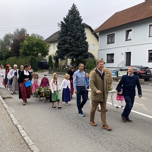 Beim Erntedankfest nutzte die Pfarrgemeinde auch die Gelegenheit um sich noch einmal ganz offiziell bei Fuchs Ingrid für die 30-jährige Leitung der Jungschar Suben zu bedanken.