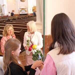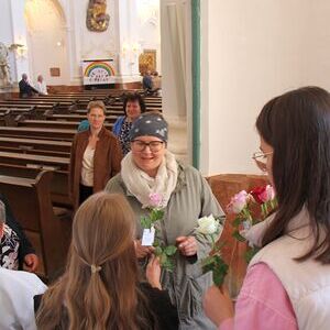 Im Anschluss an den Gottesdienst erhielt jede Frau als Zeichen der Wertschätzung eine Rose.