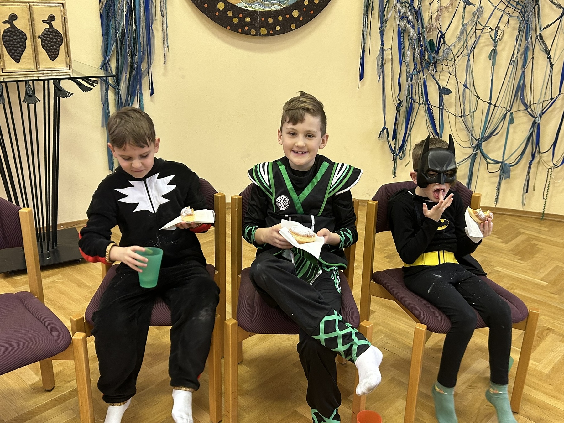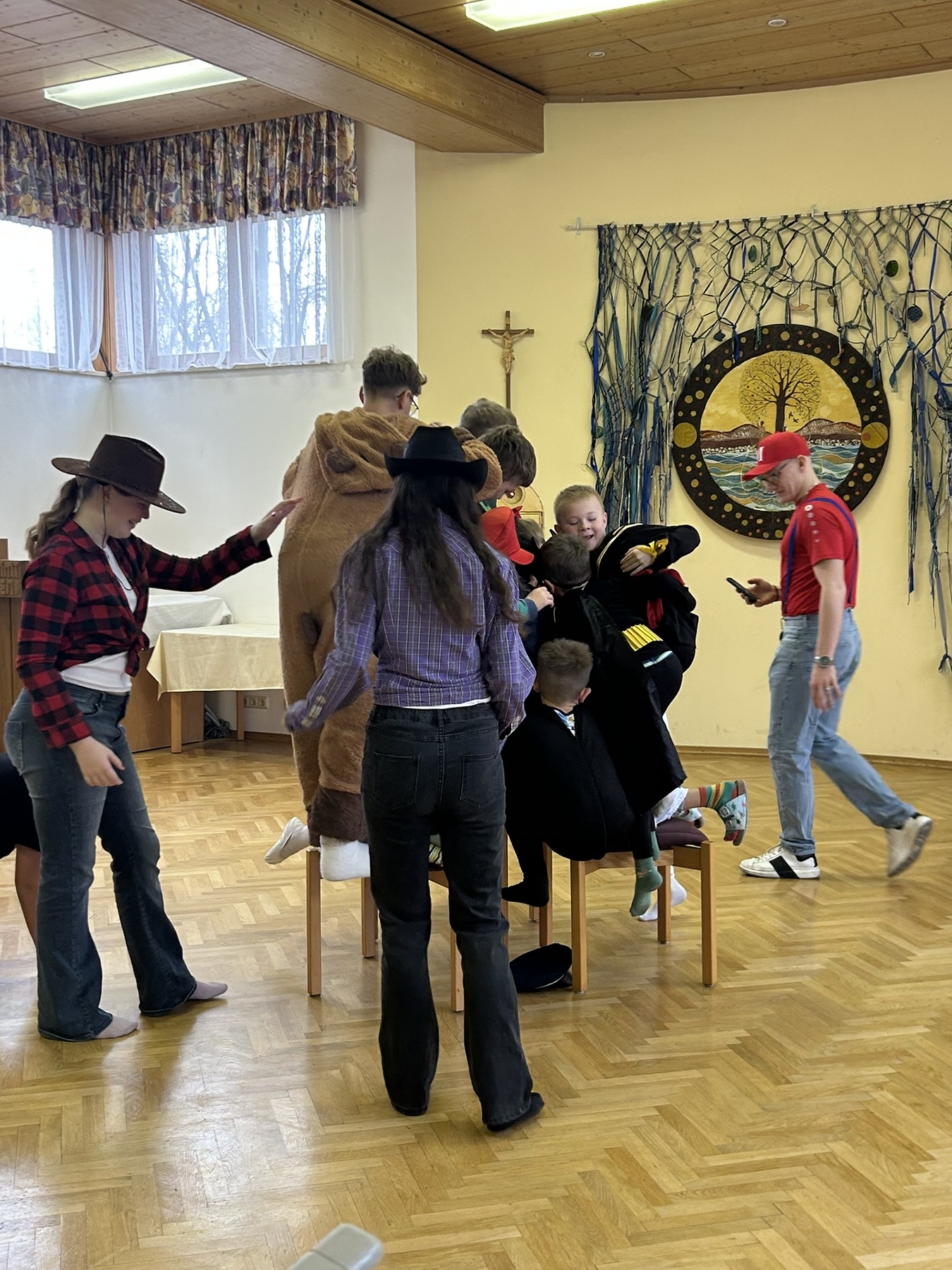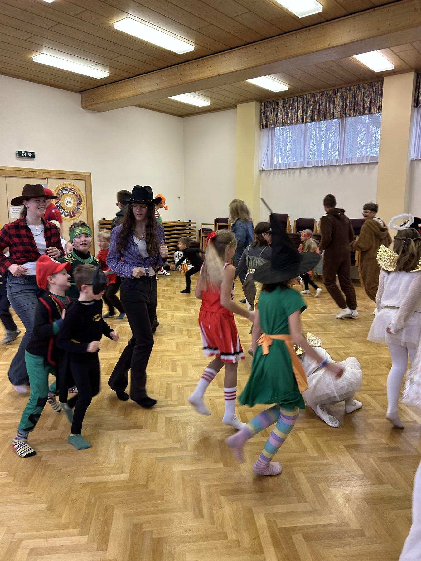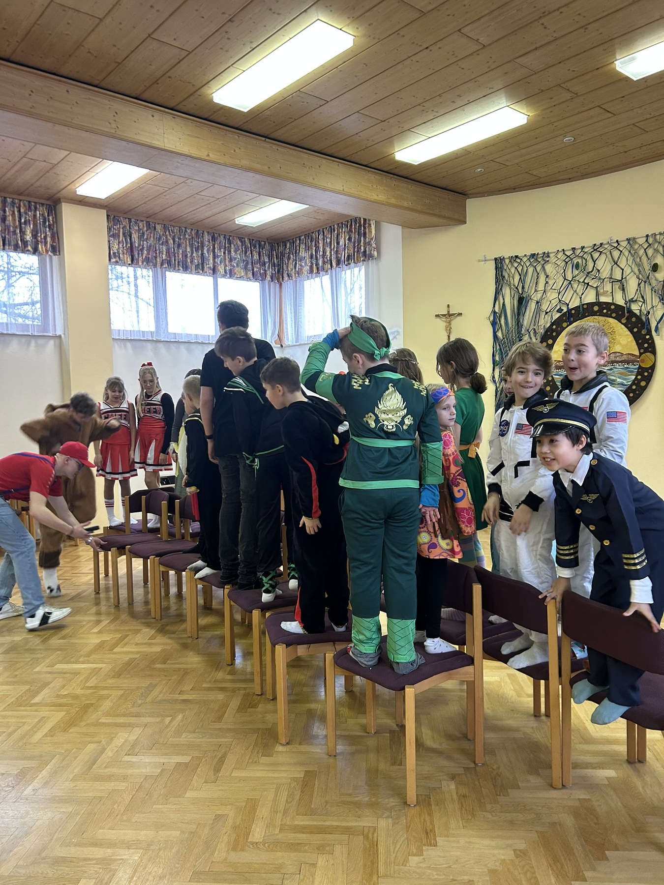 Die Kinder kamen in bunten Verkleidungen und waren mit großer Begeisterung dabei. Besonders gefreut haben sich alle über die Faschingskrapfen mit Marmelade, die natürlich nicht fehlen durften.