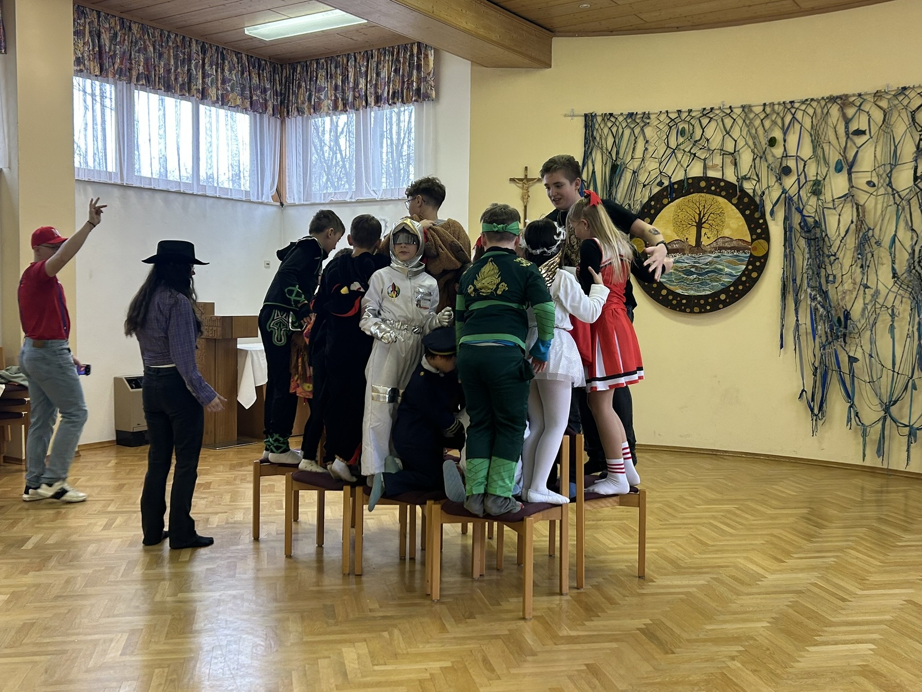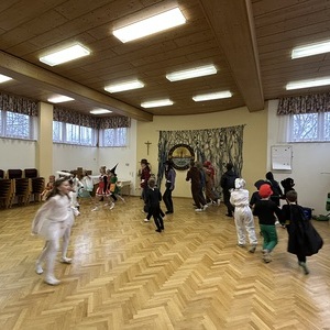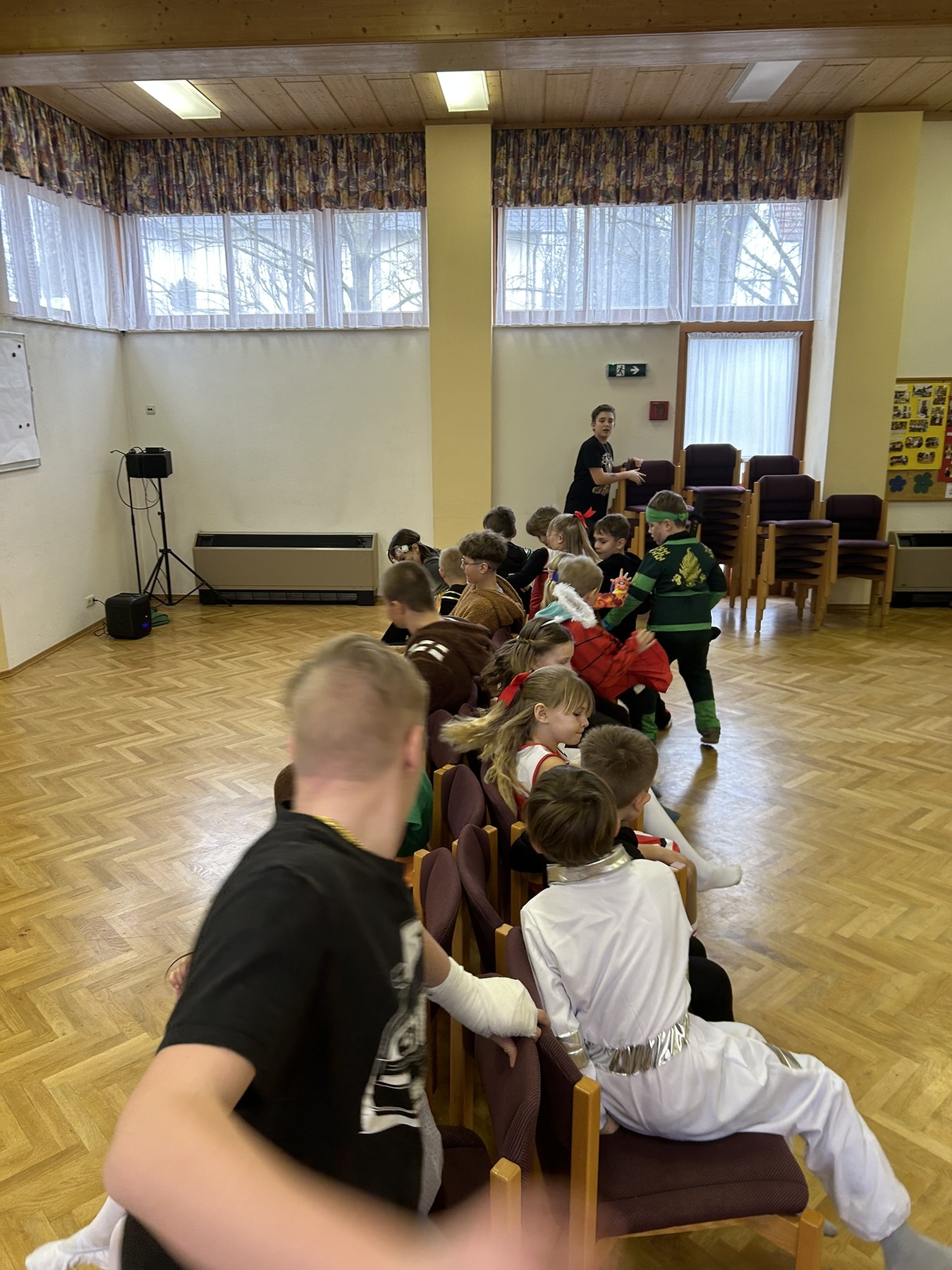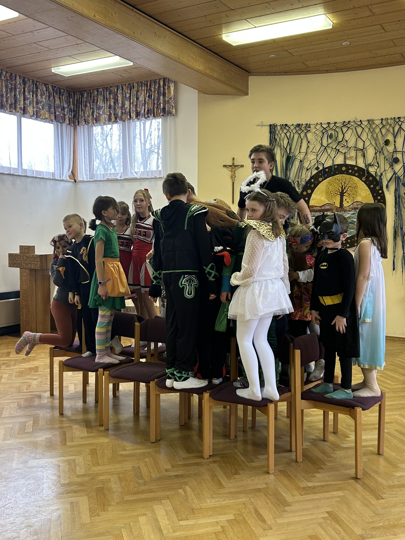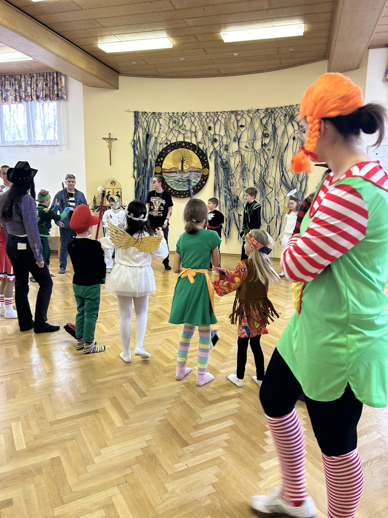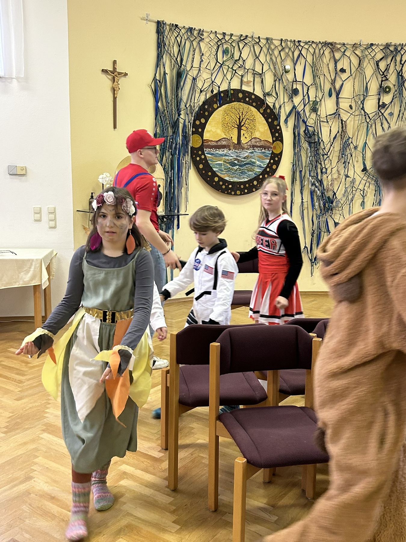 Die Kinder kamen in bunten Verkleidungen und waren mit großer Begeisterung dabei. Besonders gefreut haben sich alle über die Faschingskrapfen mit Marmelade, die natürlich nicht fehlen durften.