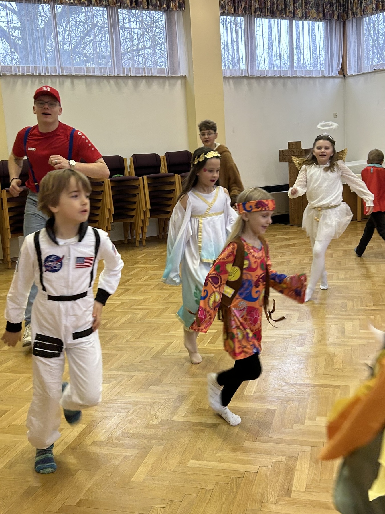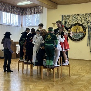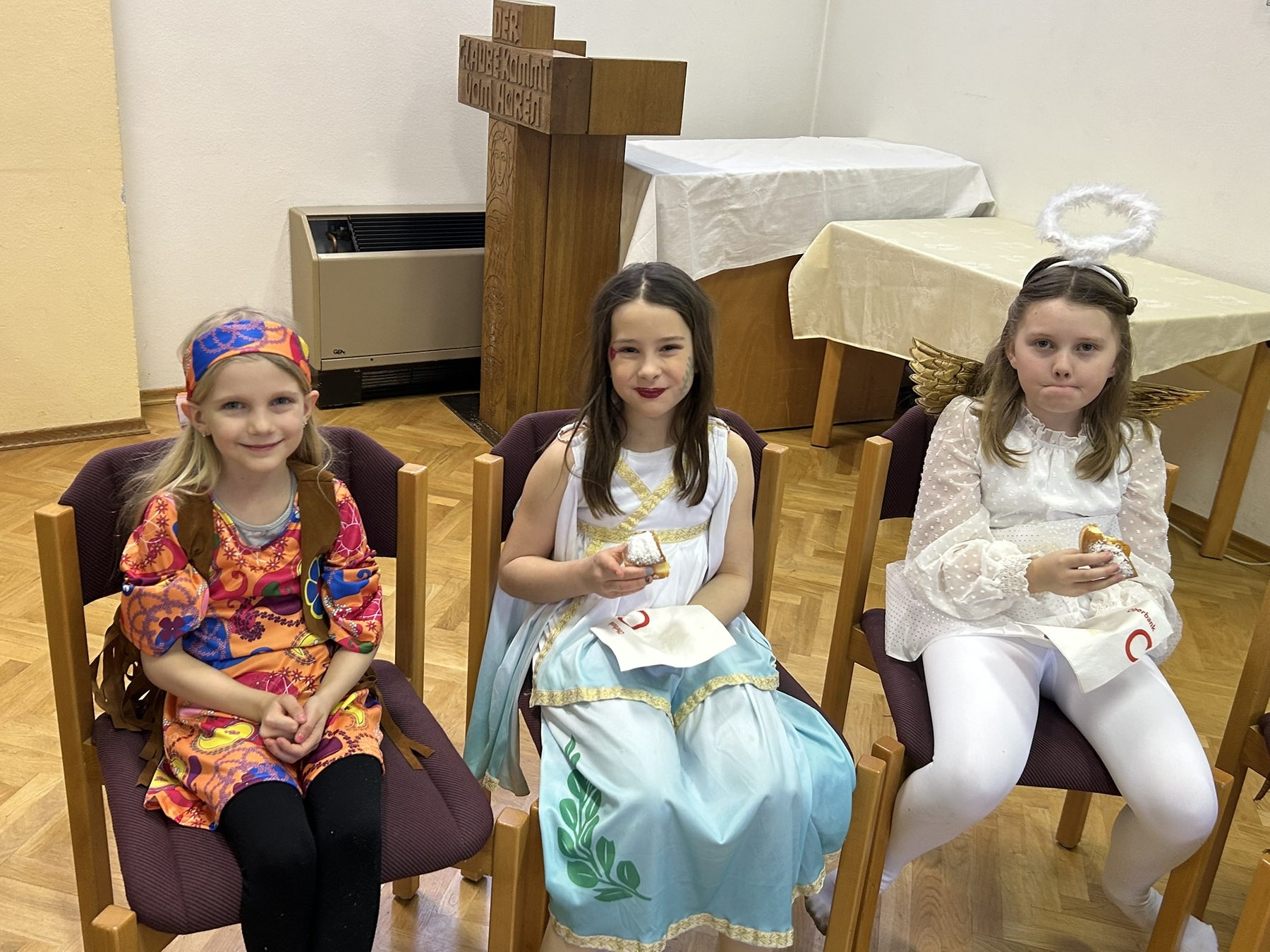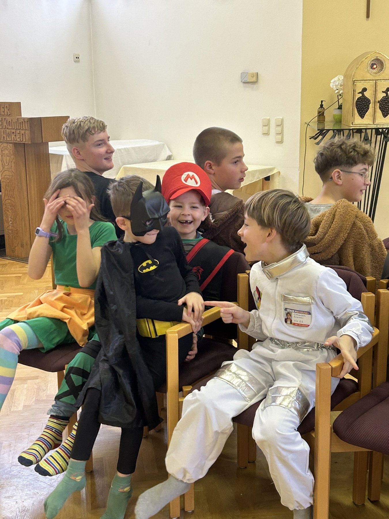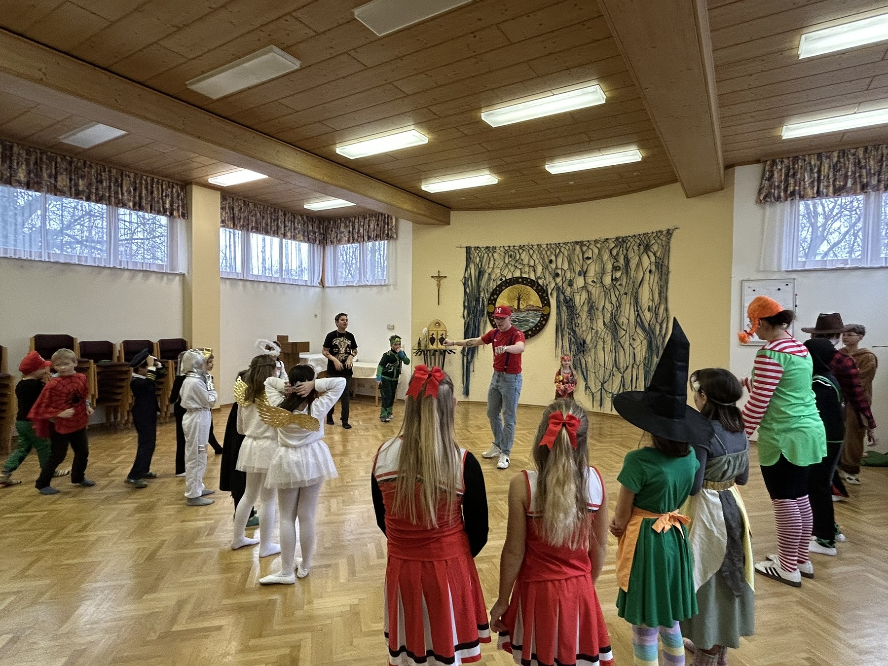 Die Kinder kamen in bunten Verkleidungen und waren mit großer Begeisterung dabei. Besonders gefreut haben sich alle über die Faschingskrapfen mit Marmelade, die natürlich nicht fehlen durften.