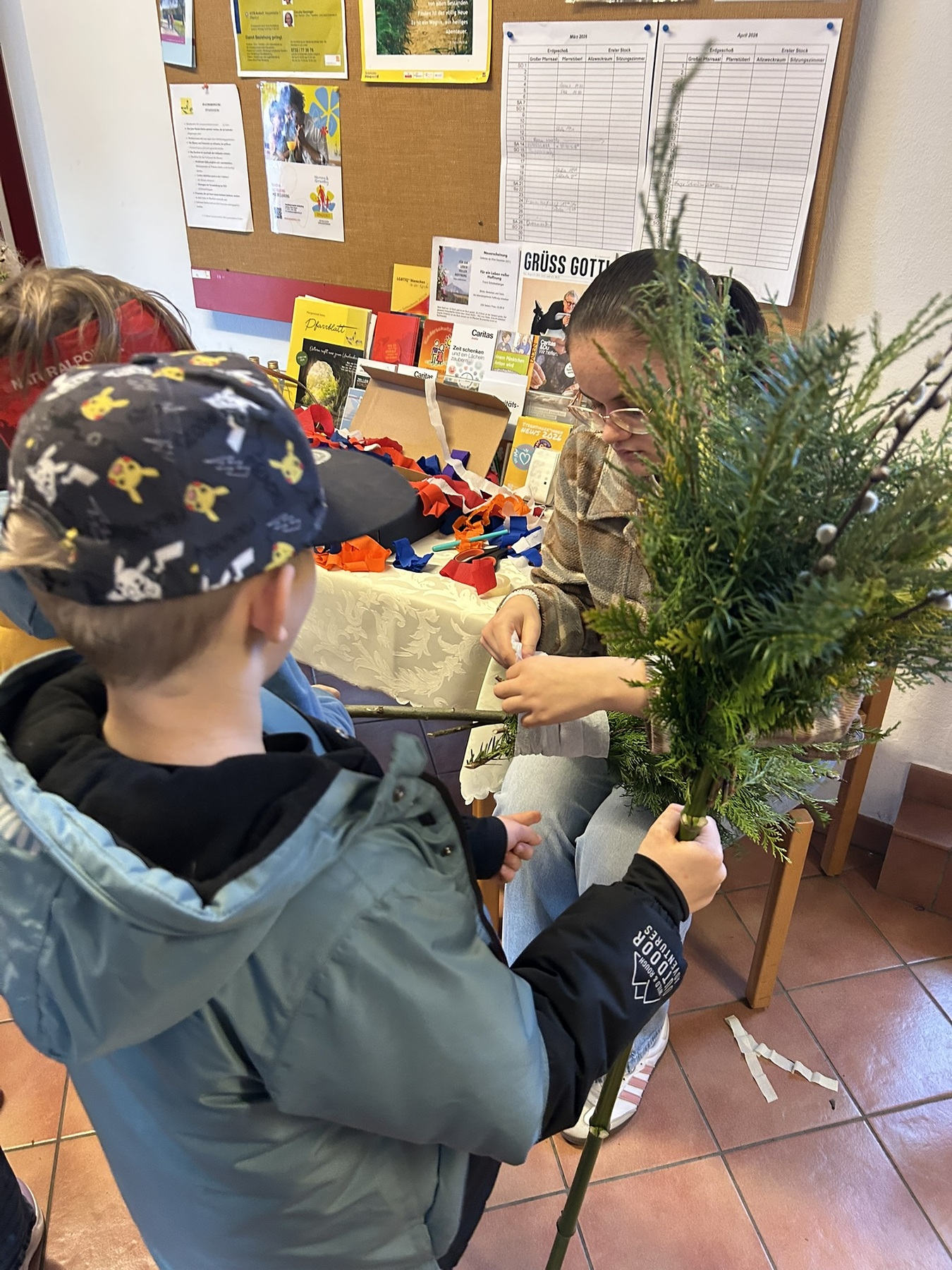 Aber es wurden nicht nur Palmbuschen gebunden, sondern auch Osterüberraschungen für unsere Pfarrbevölkerung gebastelt, gemeinsam gerätselt und auf den PALMSONNTAG vorbereitet.