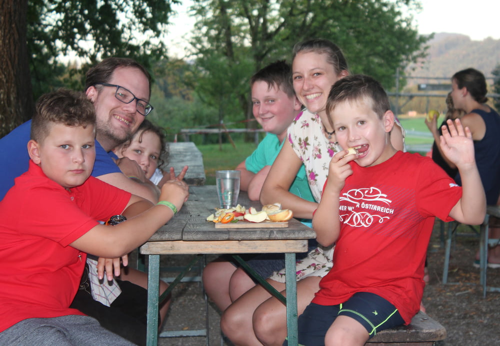 Natürlich durfte auch das gemeinsame Singen am Lagerfeuer und der stimmungsvolle Gottesdienst mit Pfarrer Edi Bachleitner, der das Küchenteam verstärkte, nicht fehlen.
