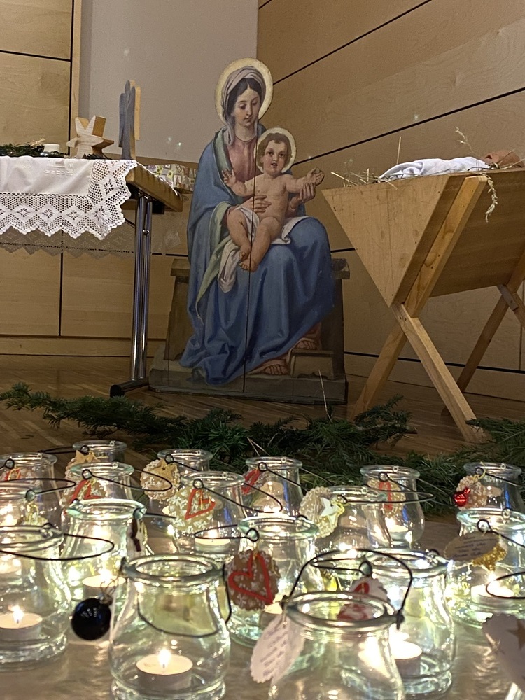 Im Anschluss an die Feier im Veranstaltungssaal wurden noch vorm großen Christbaum beim Gemeindeamt Wunderkerzen entzündet und gemeinsam STILLE NACHT, HEILIGE NACHT gesungen.