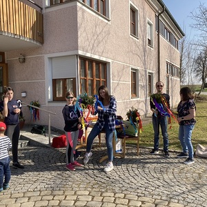Bei strahlendem Sonnenschein konnten die Kinder außerdem das Jungscharteam kennenlernen, einen Osterstauch basteln und die Ratschn ausprobieren.
