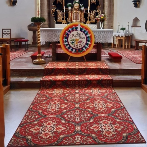 Ein paar edler Spender:innen aus der Pfarrbervölkerung haben drei neue Teppiche für den vorderen Bereich unserer Pfarrkirche gestiftet. Herzliches Vergelt's Gott!