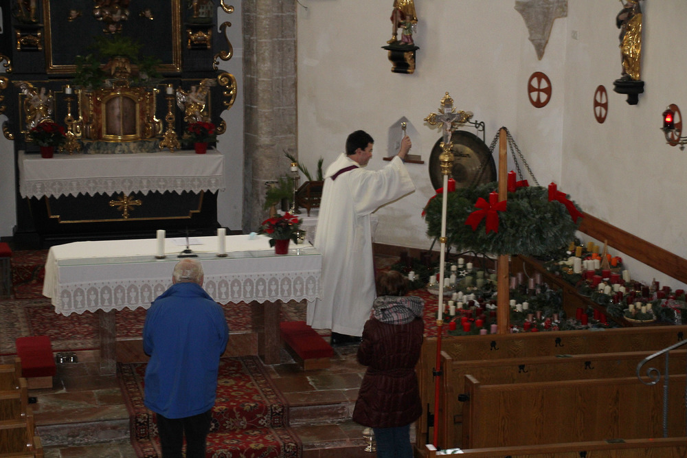 Am Sa, 28. November weihte Kaplan Franziskus in einer feierlichen Andacht gemeinsam mit Kurat Josef Steinkellner und Mesnerin Aloisia die Adventkränze der Pfarrbevölkerung - unter Ausschluss der Öffentlichkeit. Viele Menschen freuten sich über die Möglichkeit, ihre Kränze am Vormittag abzuliefern und am Nachmittag geweiht wieder abholen zu können. Wir wünschen allen einen stimmungsvollen Advent.