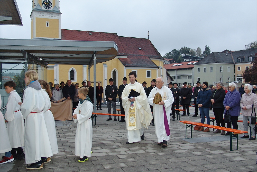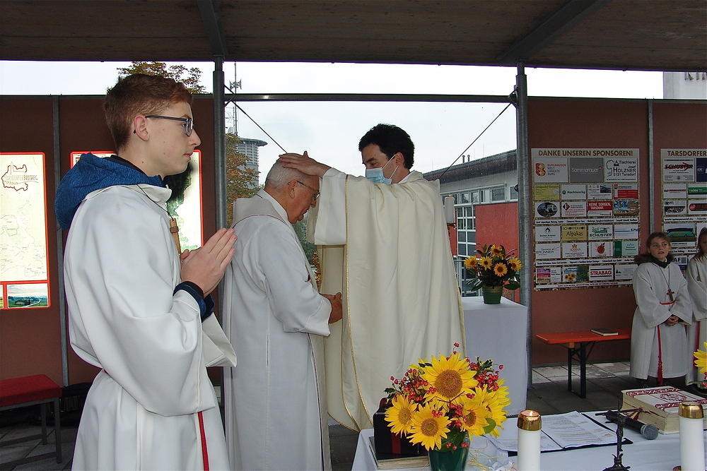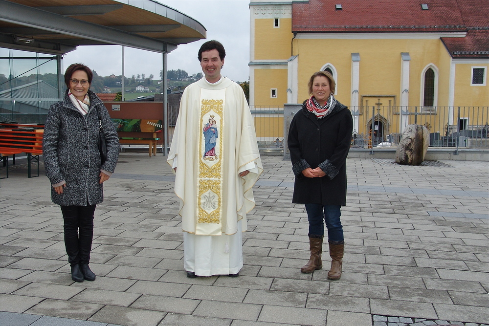 Die Vertreter des Pfarrgemeinderates hießen Kaplan Franziskus herzlich willkommen, sprachen ein Segensgebet und überreichten das gemeinsame Geschenk in Namen der Pfarrbevölkerung.