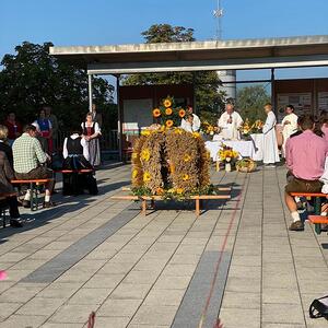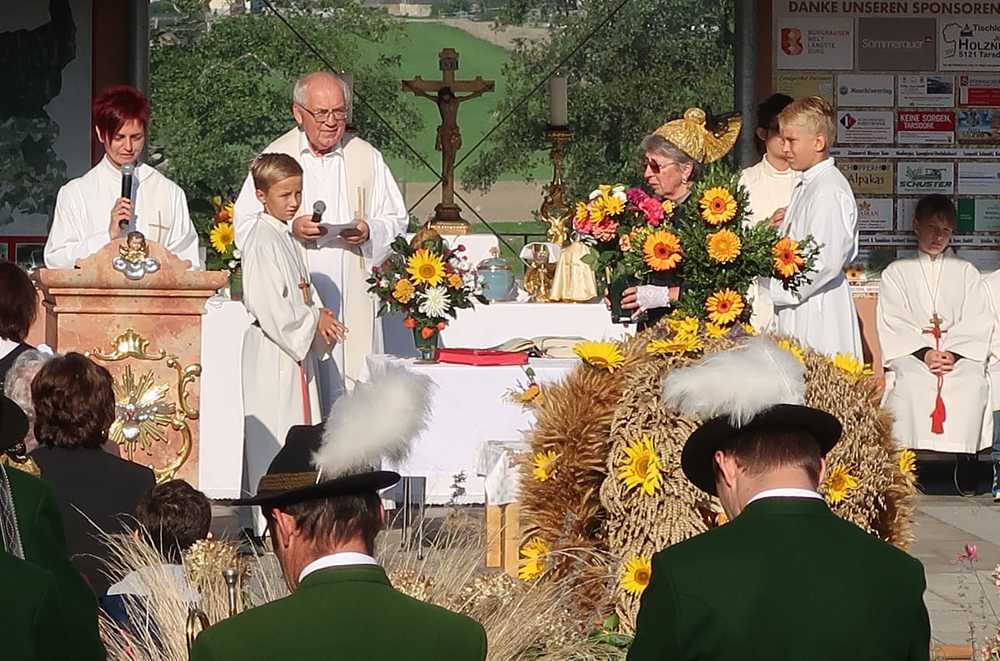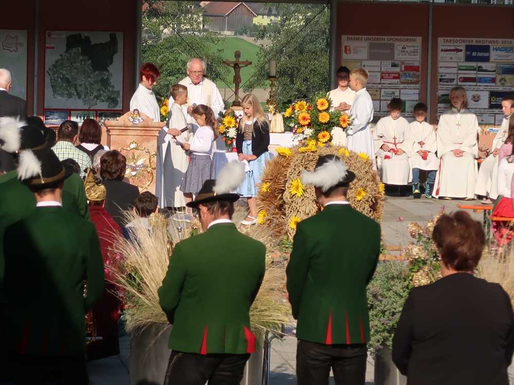 Unter strahlender Morgensonne feierte die Pfarrgemeinde Tarsdorf mit Kurat Josef Steinkellner und den Wortgottesdienstleiterinnen Sabina Eder und Katharina Becher das heurige Erntedankfest unter freiem Himmel. Trotz strenger Einhaltung aller Corona-Auflagen ein stimmungsvoller Dankgottesdienst. Ein großer Dank galt auch der Landjugend, die wieder die Erntekrone schmückte.