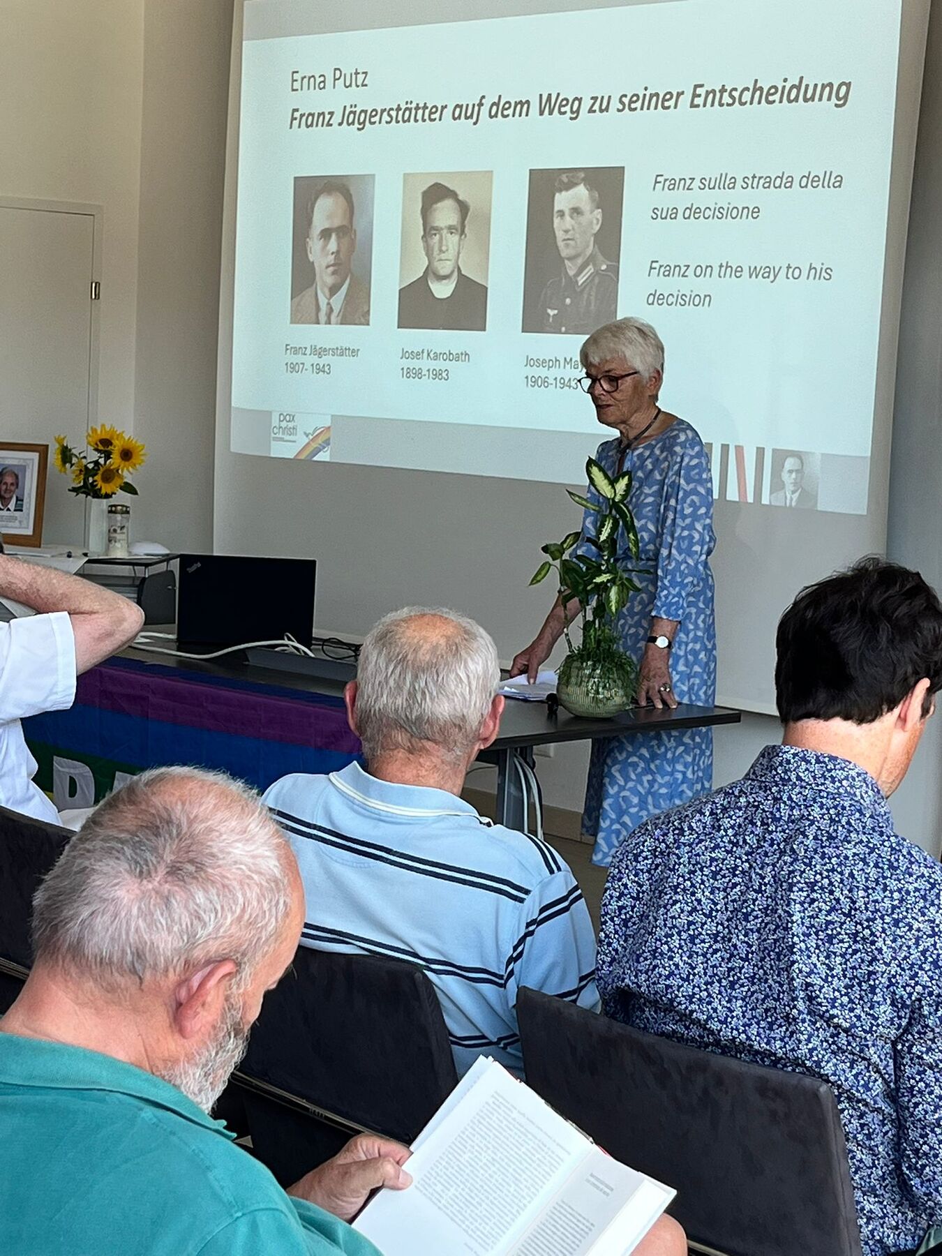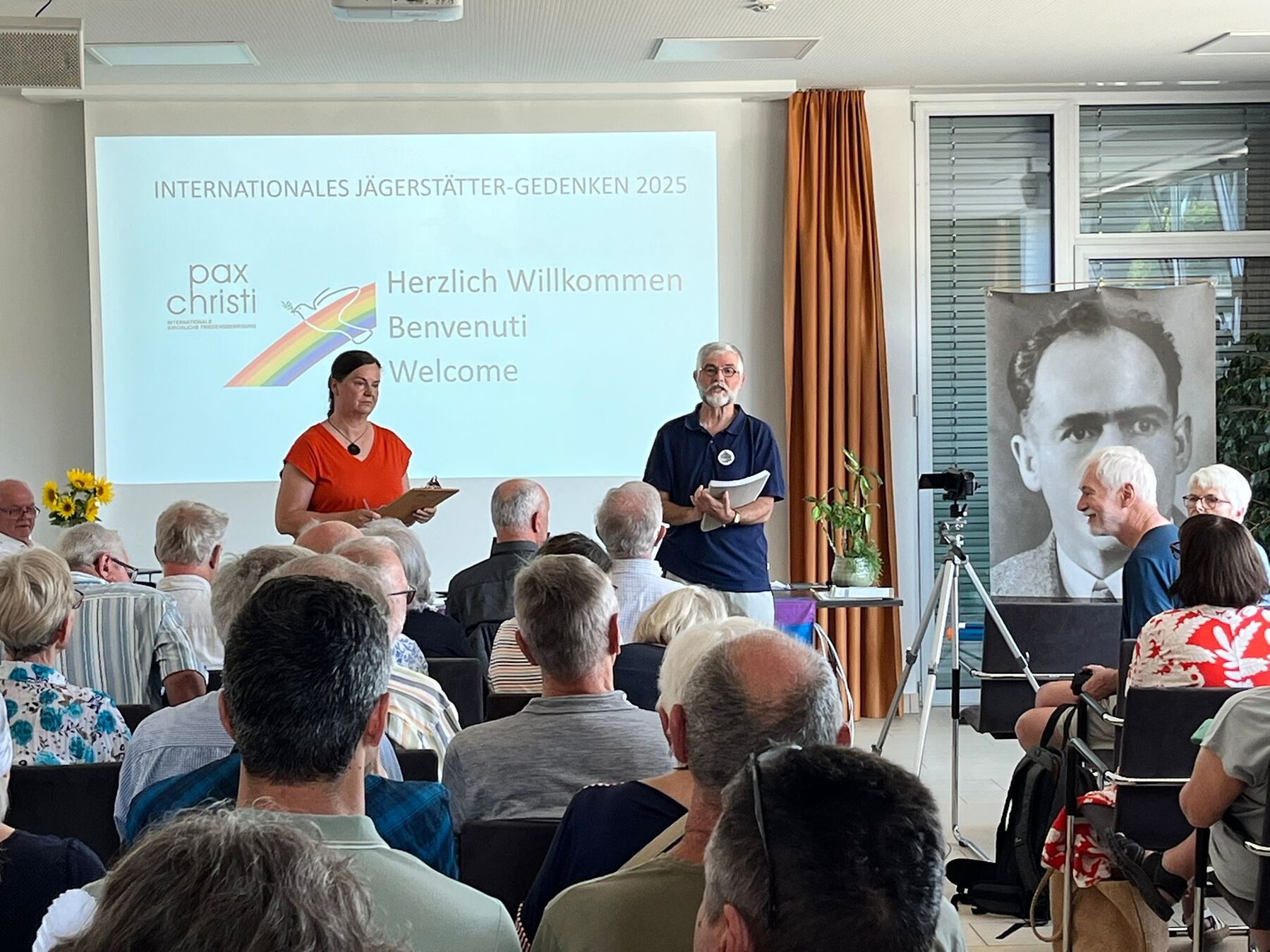 Anlässlich des Todestags des Seligen Franz Jägerstätter hielten Dr. Erna Putz und Dr. Wolfgang Palaver beim Gedenktag am 9. August eindrucksvolle Vorträge zum Thema "Menschenrechte und Demokratie unter Druck" im Gemeindesaal Tarsdorf. Organisiert wurde das Treffen durch Pax Christi. Am Nachmittag fanden eine Andacht und abends eine Gedenkmesse mit Diözesanbischof Manfred Scheuer in der Pfarrkirche St. Radegund statt.