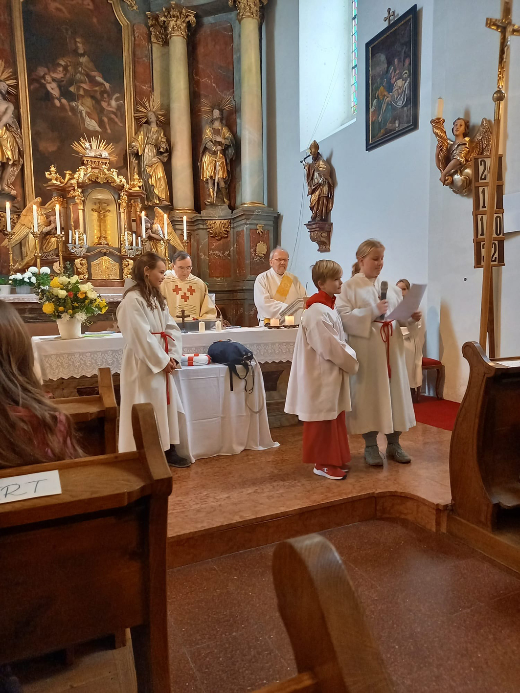Am Christkönigsonntag, dem 20. Nov. 2022 wurden im Rahmen eines Familiengottesdienstes zwei neue Ministrantinnen in die Schar der Minis aufgenommen. Wir freuen uns über diese Verstärkung. Es sind dies: