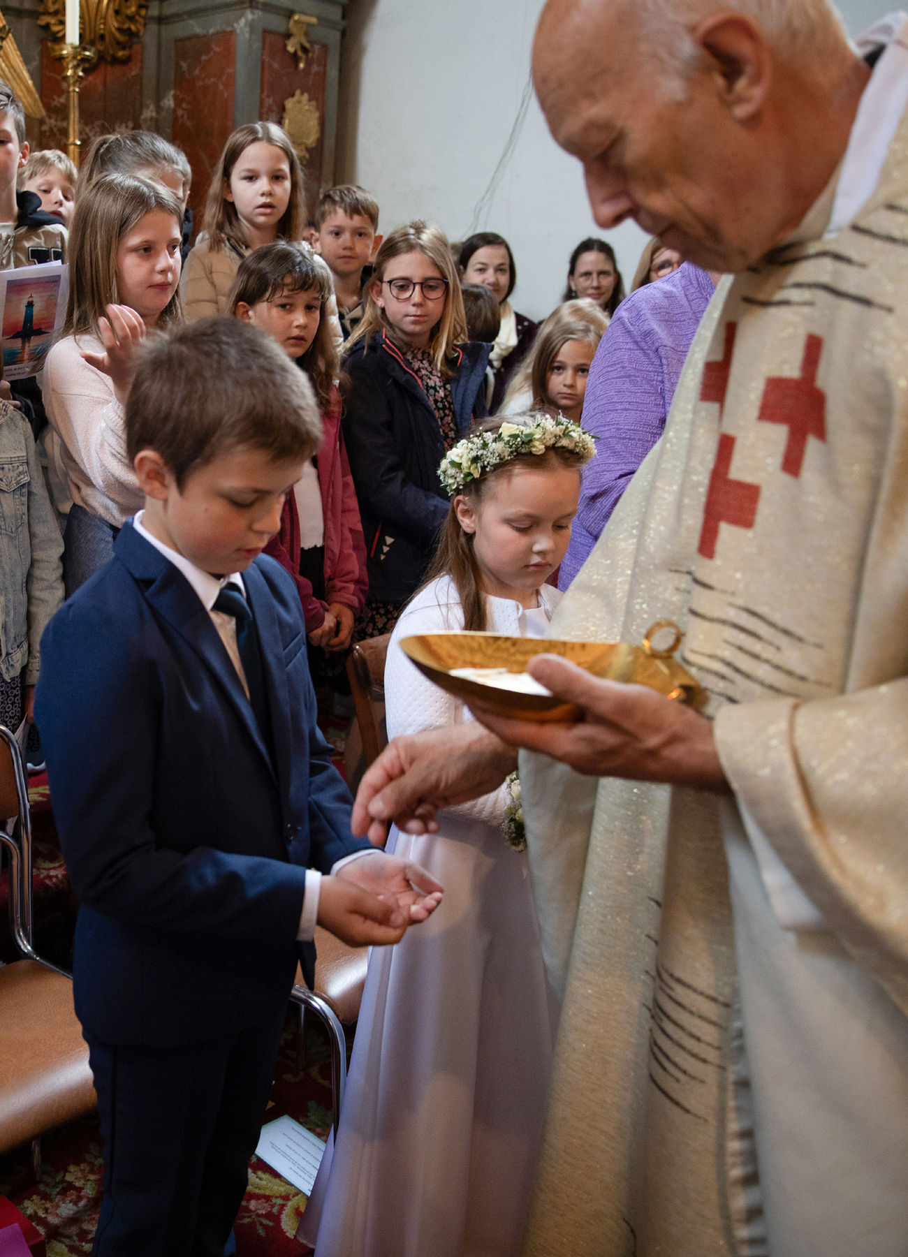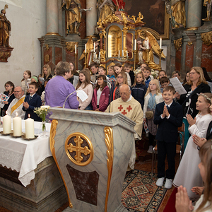 Pfarrer Walter Miggisch aus Altschwendt feierte mit den Kindern. Religionslehrerin Gertraud Mayr hat mit sechs Tischmüttern die Kinder in bewährter Form und Begeisterung darauf vorbereitet und auch den Kinderchor geleitet. Tischmütter waren Magdalena Schaur und Barbara Gittmaier, Barbara Denkmayr-Samhaber und Birgit Humer, sowie Daniela Aigner und Regina Götzendorfer . Für euren Einsatz in der Begleitung der Kinder ein großes Danke.