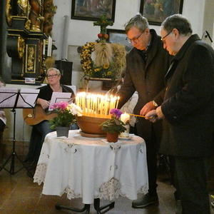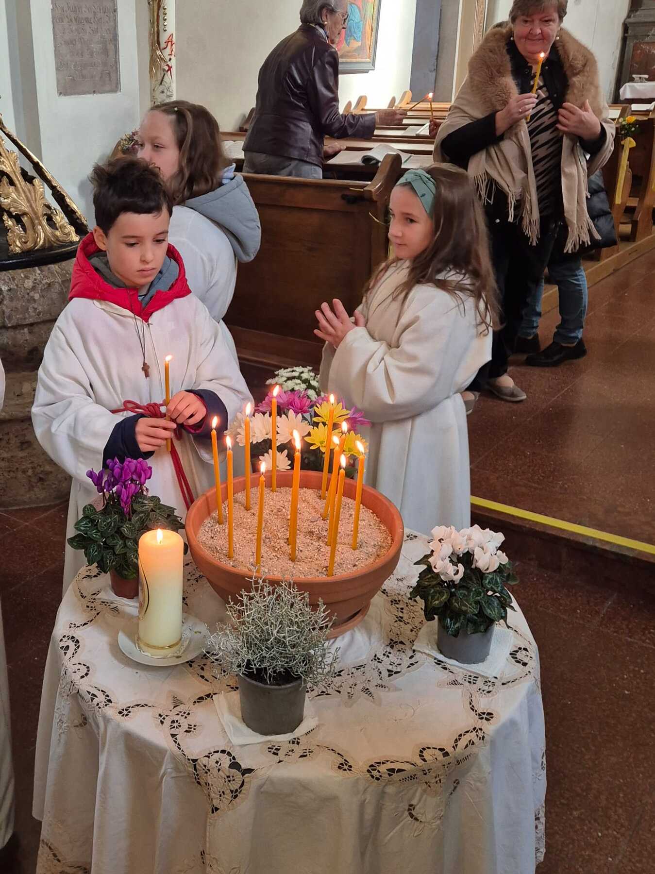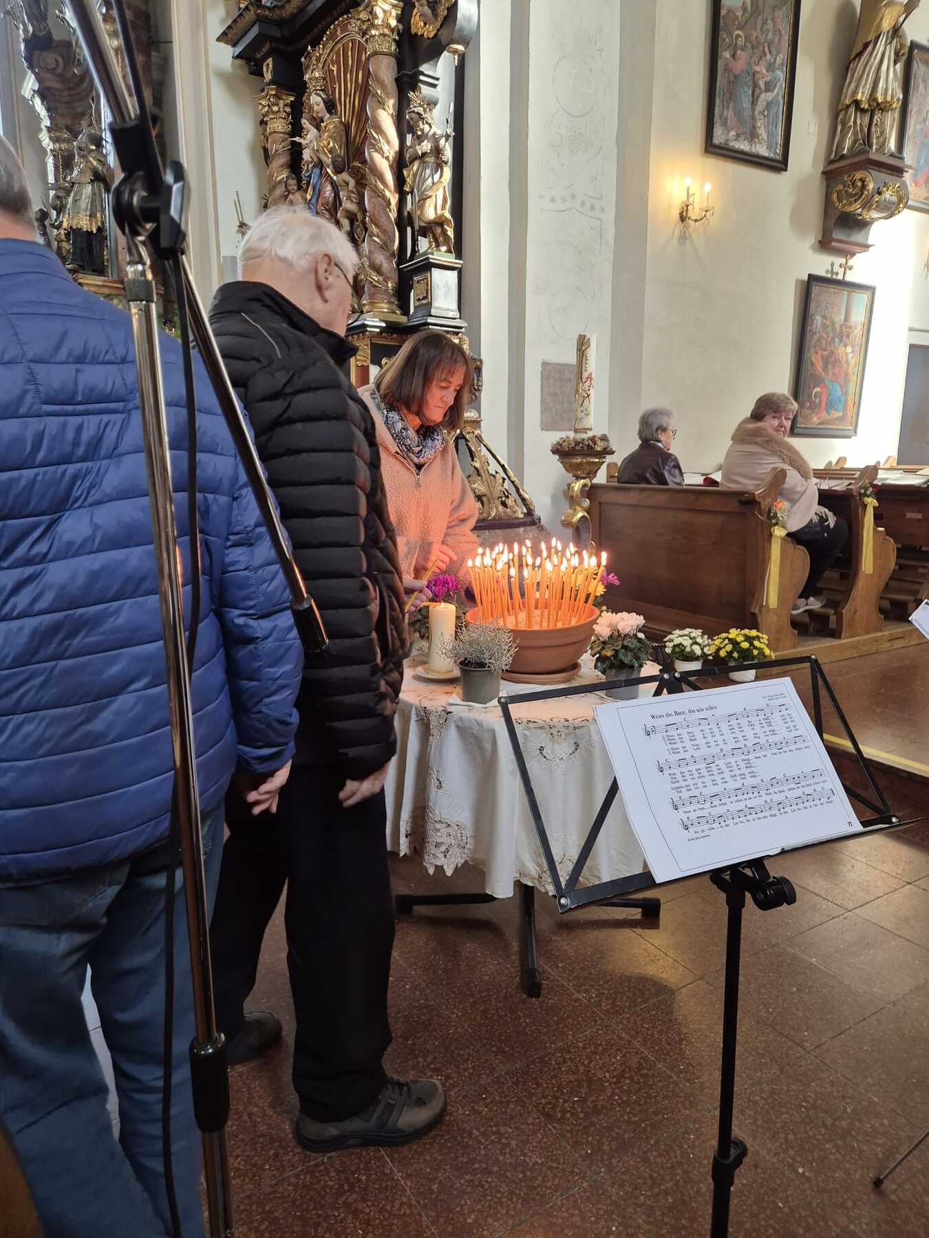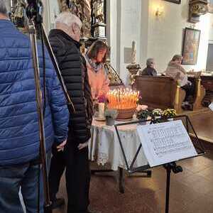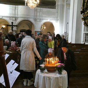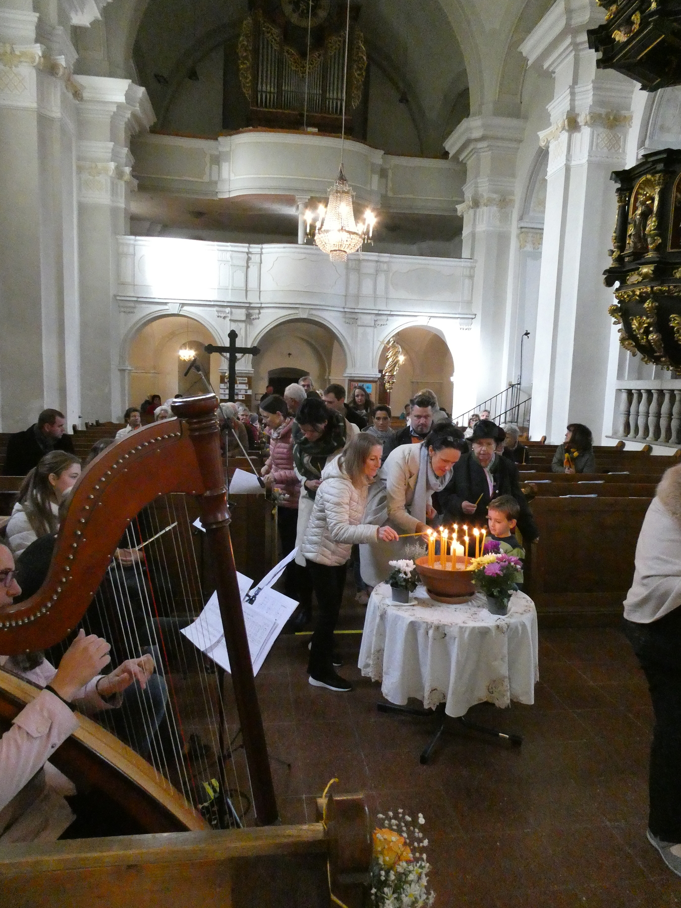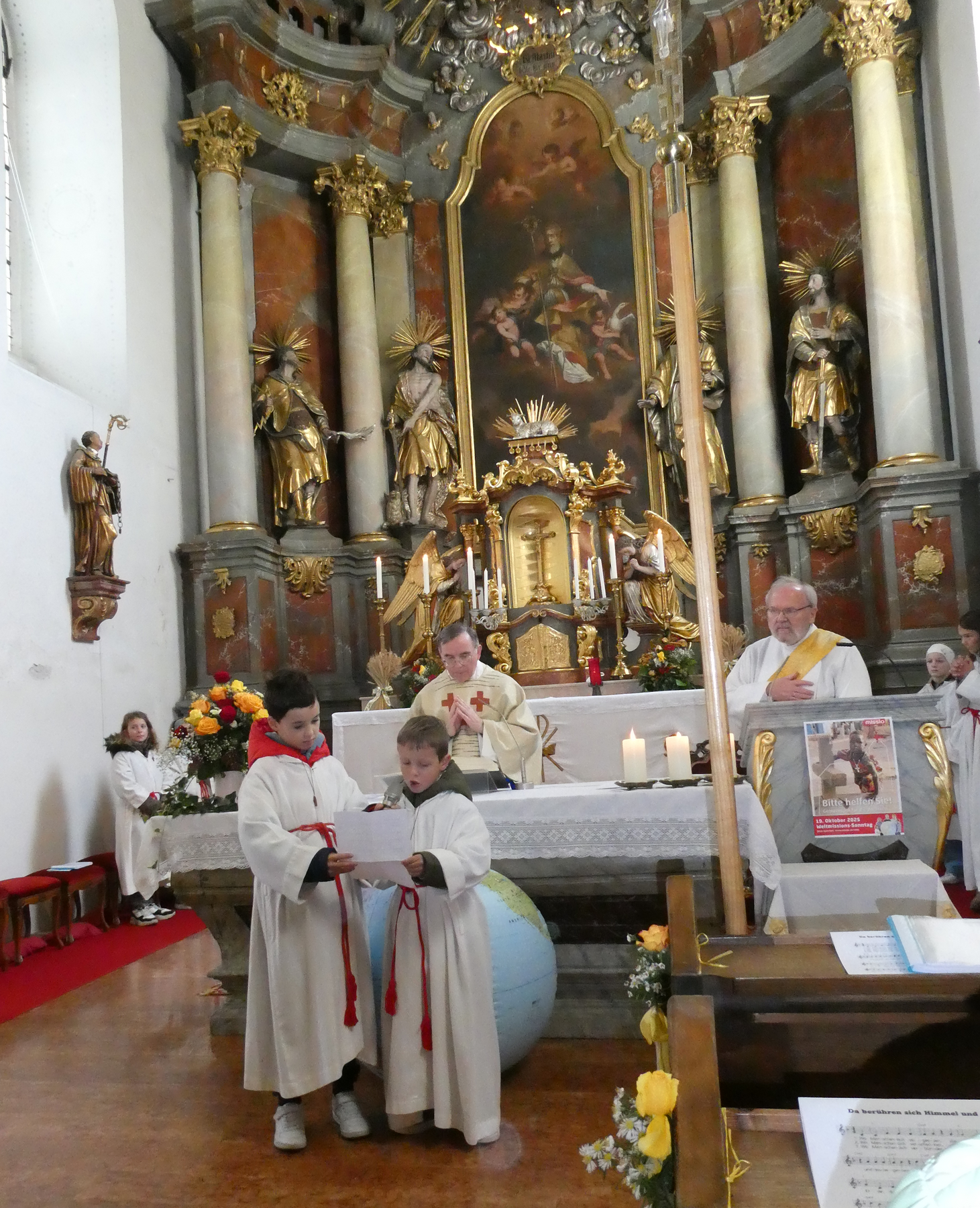 Nach dem Gottesdienst bieten Jugendliche wieder Schokopralinen und "Happy blue Chips" an, die man käuflich erwerben kann. Sie unterstützen damit die Hilfsprojekte der Jugendaktion in der Republik Kongo.