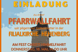 Am Fest Christi Himmelfahrt möchten wir wieder mit den Erstkommunion Kindern und deren Eltern nach Hehenberg pilgern. Dort feiern wir eine Marienandacht und bitten die Gottesmutter um ihren Schutz und ihre Fürsprache.