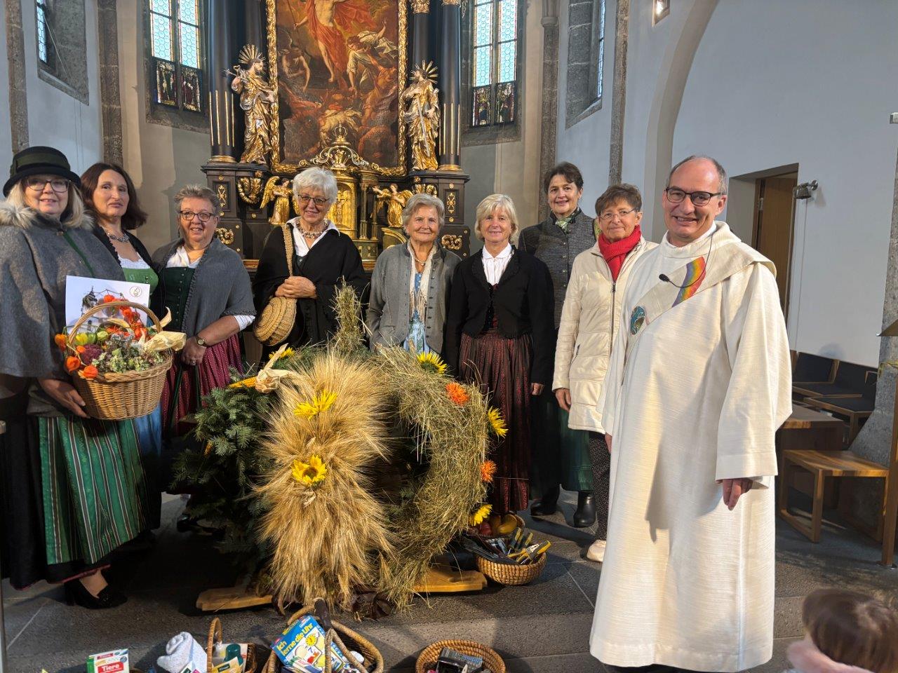 Die schön geschmückte Erntekrone und die Erntegaben erinnerten uns daran, wie dankbar wir für die Erträge des Jahres und das Miteinander in unserer Gemeinde sein dürfen.