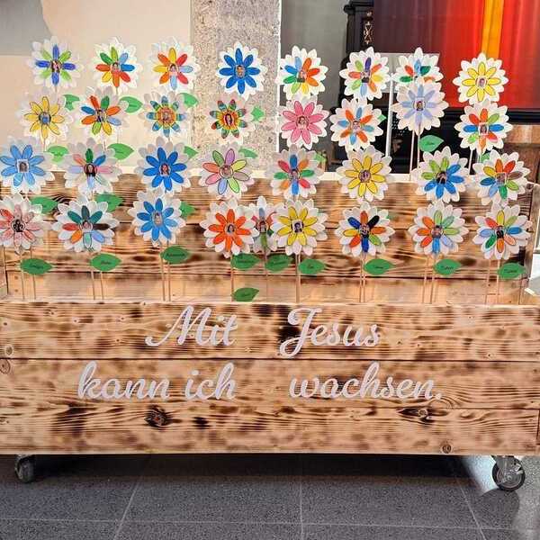 Beim Vorstellgottesdienst präsentierten sich unsere 33 Erstkommunionkinder mit ihren persönlichen Stärken und gestalteten dazu eine farbenfrohe Blume unter dem Motto „Mit Jesus kann ich wachsen“. Beim anschließenden Pfarrcafé entstanden viele schöne Begegnungen in einer warmen, einladenden Atmosphäre.