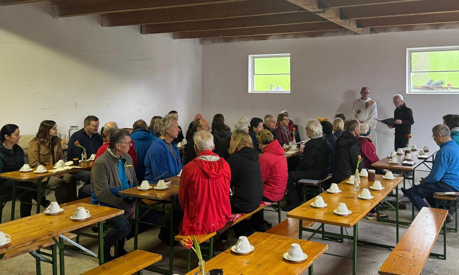 Diesmal machte sich eine Gruppe von ca. 30 Personen zu Familie Auer (Schned) auf den Weg, wo dann gemeinsam an Tischen der Gottesdienst gefeiert wurde. Die Katholische Männerbewegung sorgte wie immer für ein kräftigendes Frühstück.