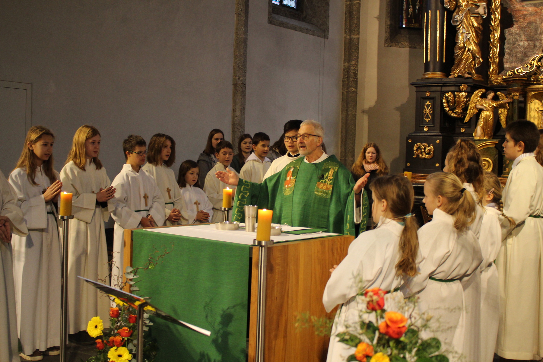 mit vielen Gästen und Geschenken.