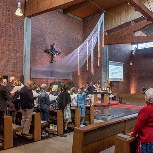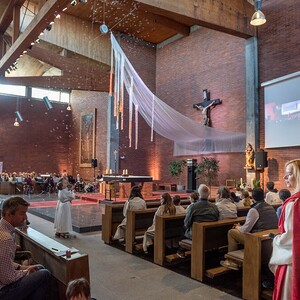 Musikalisch umrahmt und gestaltet wurde der Gottesdienst vom Chor St. Josef. Wiederum etwas Neues, standen die Sängerinnen und Sänger dieses Mal auf der linken Seite neben dem Altarraum, was beim Publikum sehr gut ankam.