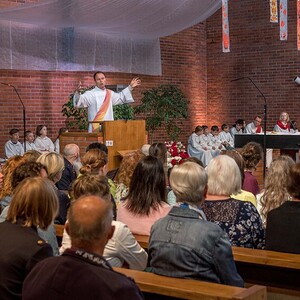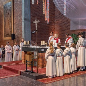 Den Festgottesdienst am Pfingstsonntag feierte diesmal Diakon Bernhard Pfusterer mit Diakon Herbert Seiringer und Pfarrleiterin Sabine. Dabei rief Diakon Bernhard alle auf, mit Zuversicht, neuen Ideen, dem Glauben an gute Entwicklungsmöglichkeiten, und dass Vielfalt etwas Gutes ist, gemeinsam die Kirche zu gestalten und in die Zukunft zu gehen.
