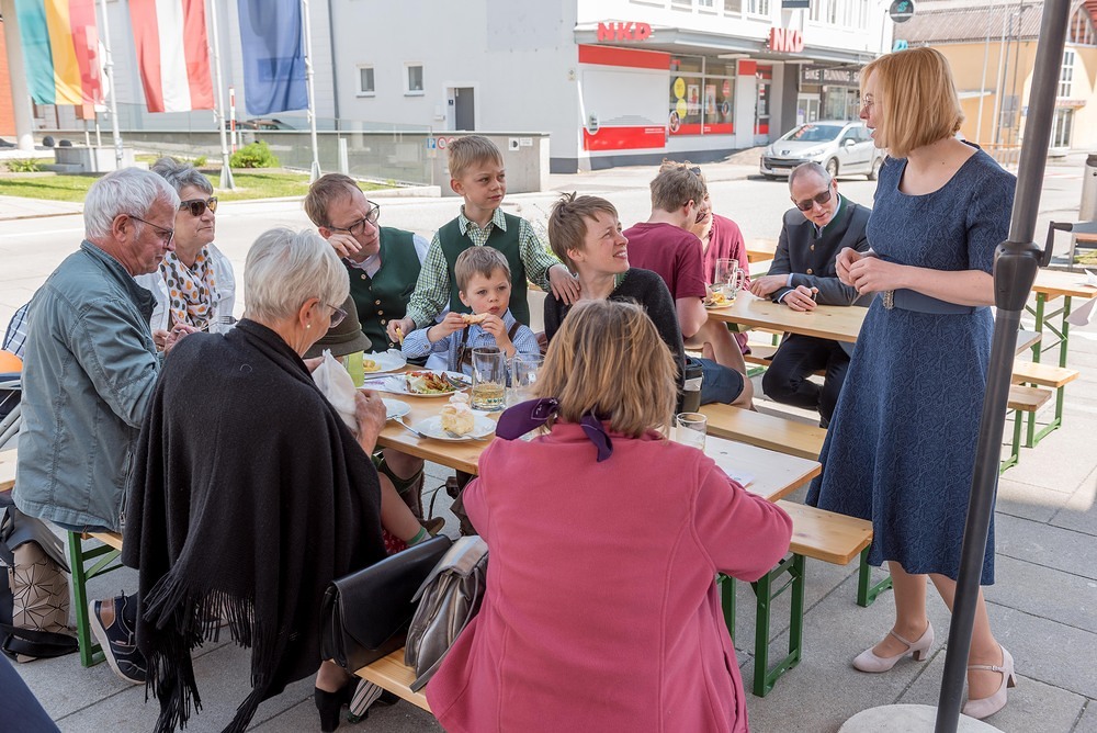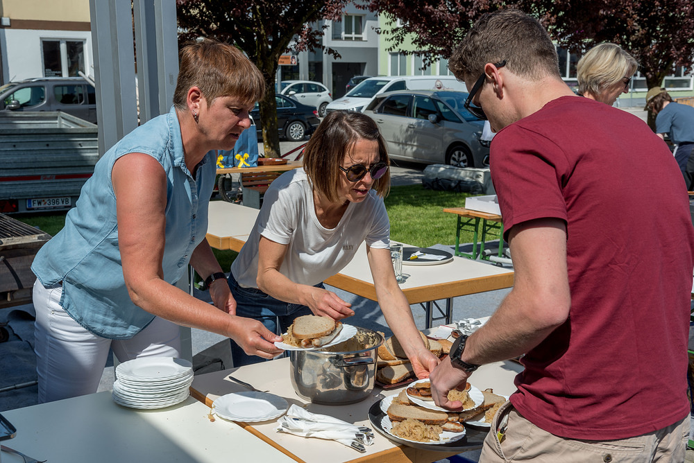 Nach dem Segen ging es mit dem Frühschoppen der Marktmusik Timelkam unter Obmann Gerald Klement und Kapellmeister Christoph Eckl bis in den Nachmittag bei Bratwürstel, Pizza, vegetarischen Burger und Getränken weiter. Ein reichhaltiges Kuchenbuffet verwöhnte die Gäste und ließ keine Wünsche offen.