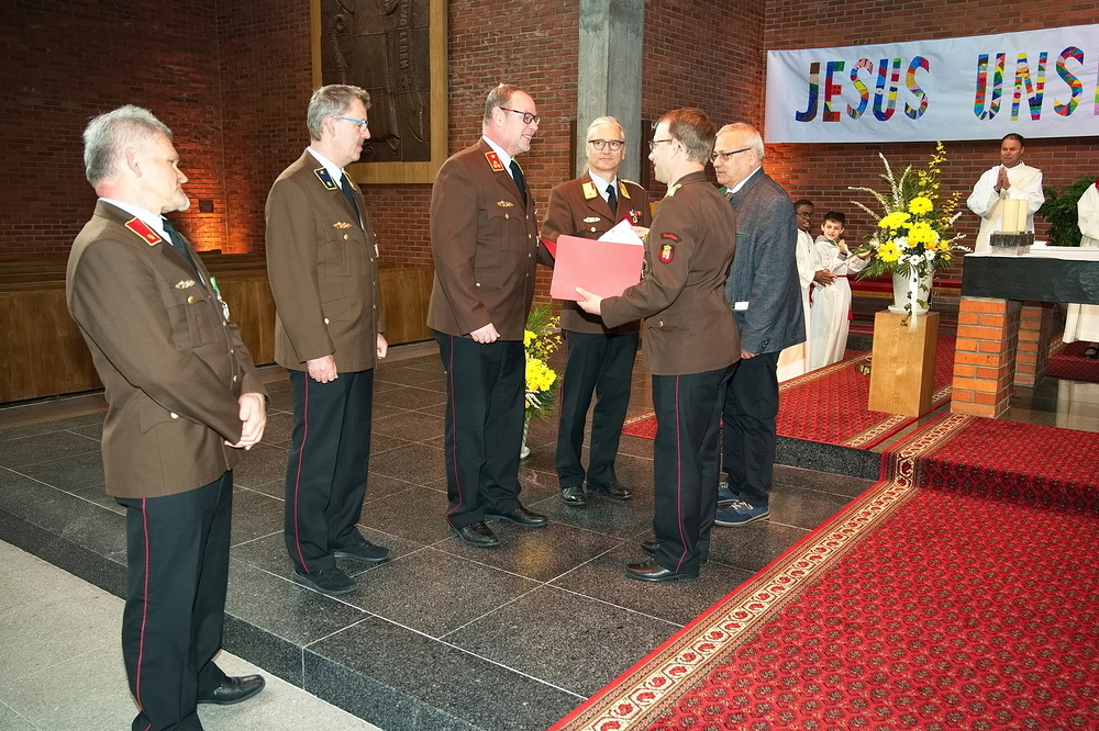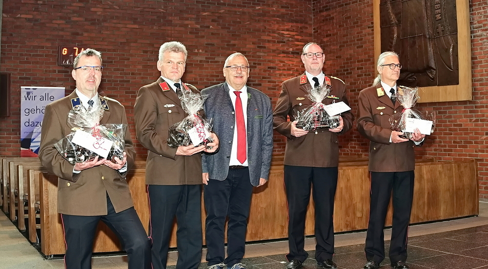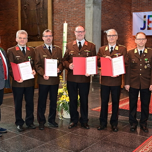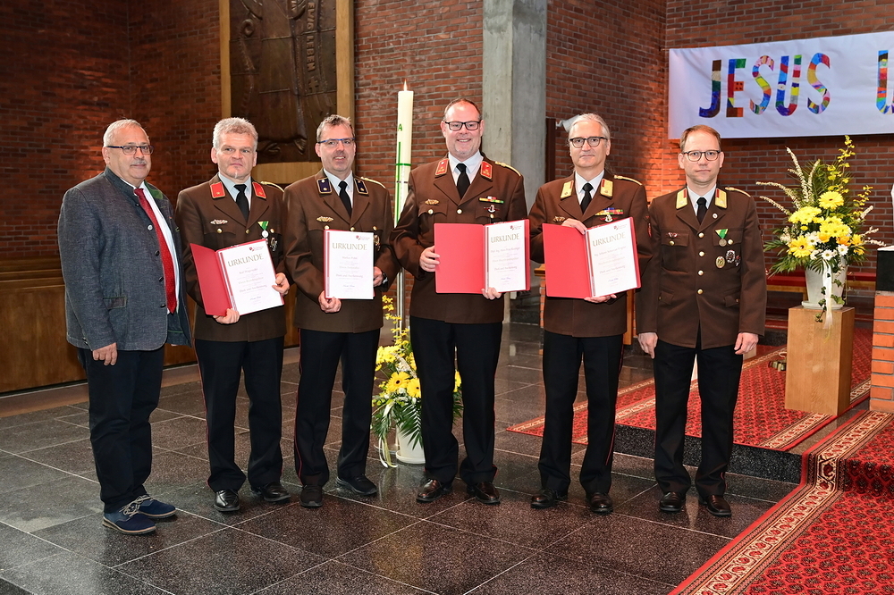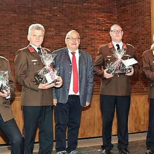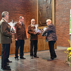 Zum Abschluss würdigte Bürgermeister Johann Kirchberger das mutige Engagement der Feuerwehren für Menschen in Not und ehrte langverdiente Feuerwehr-kameraden.