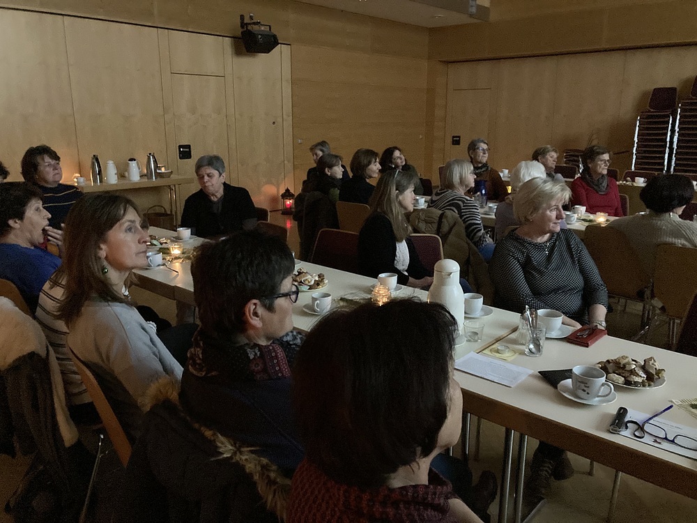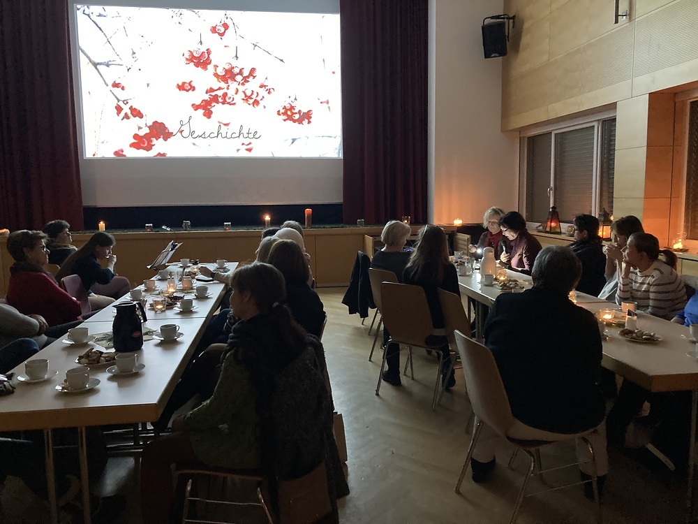Im nur mit Kerzenlicht erleuchteten Pfarrsaal sangen 25 Frauen - mit tatkräftiger Unterstützung der Musikerinnen Angela und Edith (großes DANKE dafür!) - altvertraute Advent- und Weihnachtslieder. Dazwischen gab es amüsante und besinnliche Geschichten zu hören. Köstliche Kekserl und Tee oder Glühwein sorgten für das leibliche Wohl.