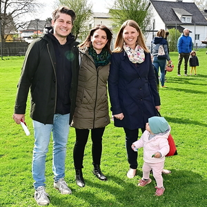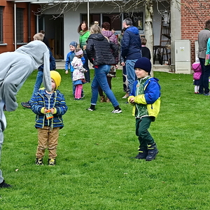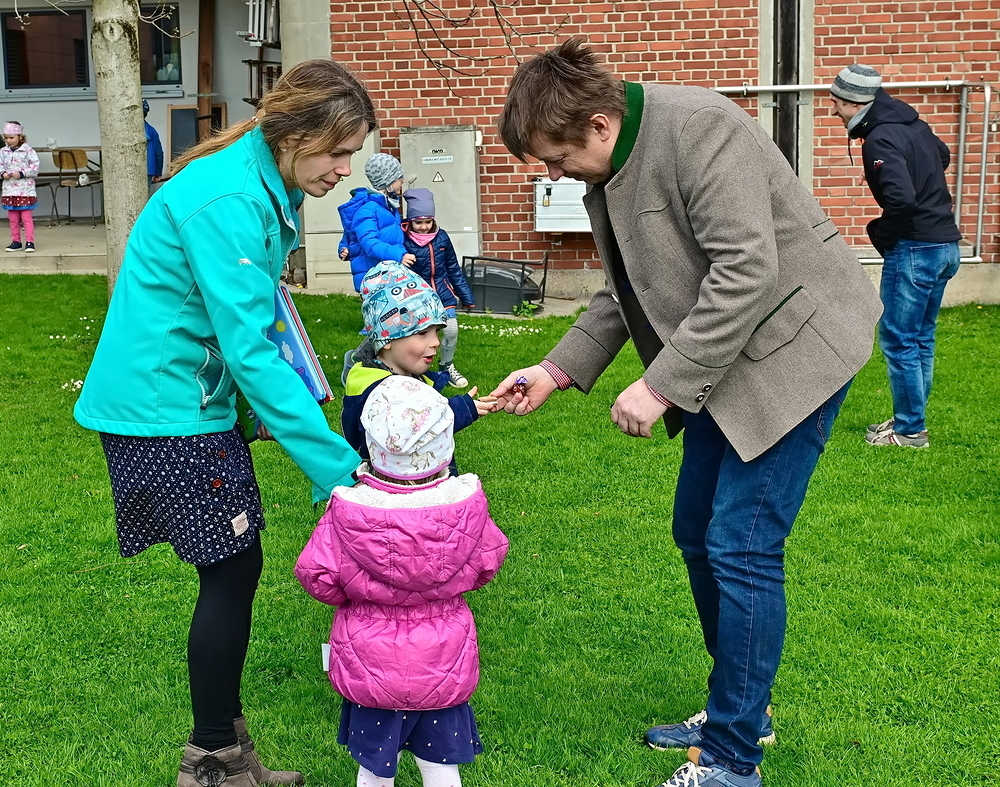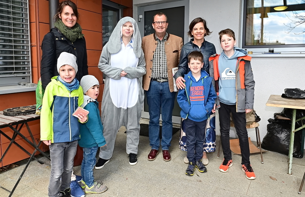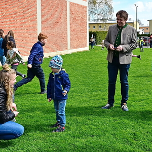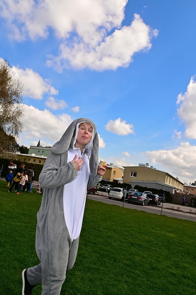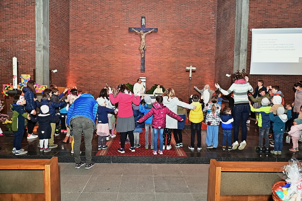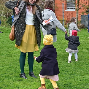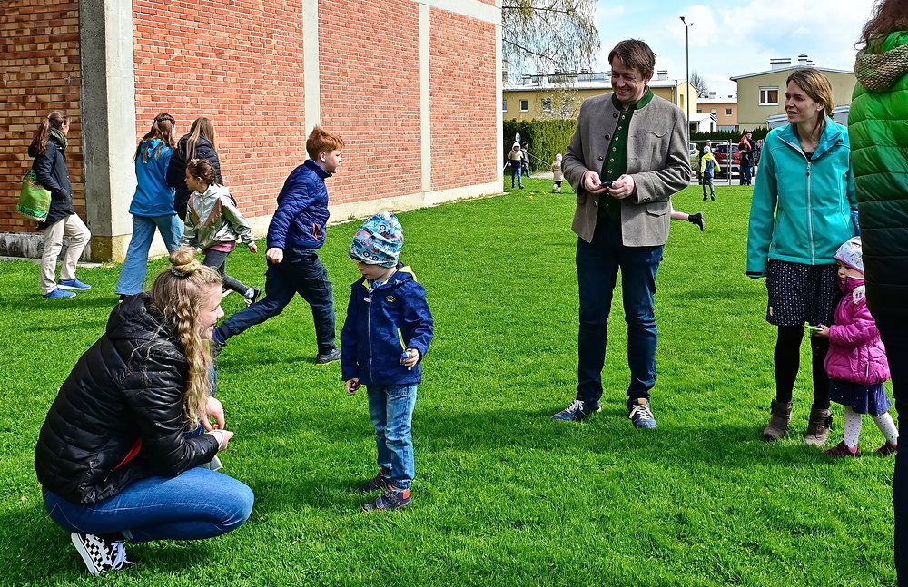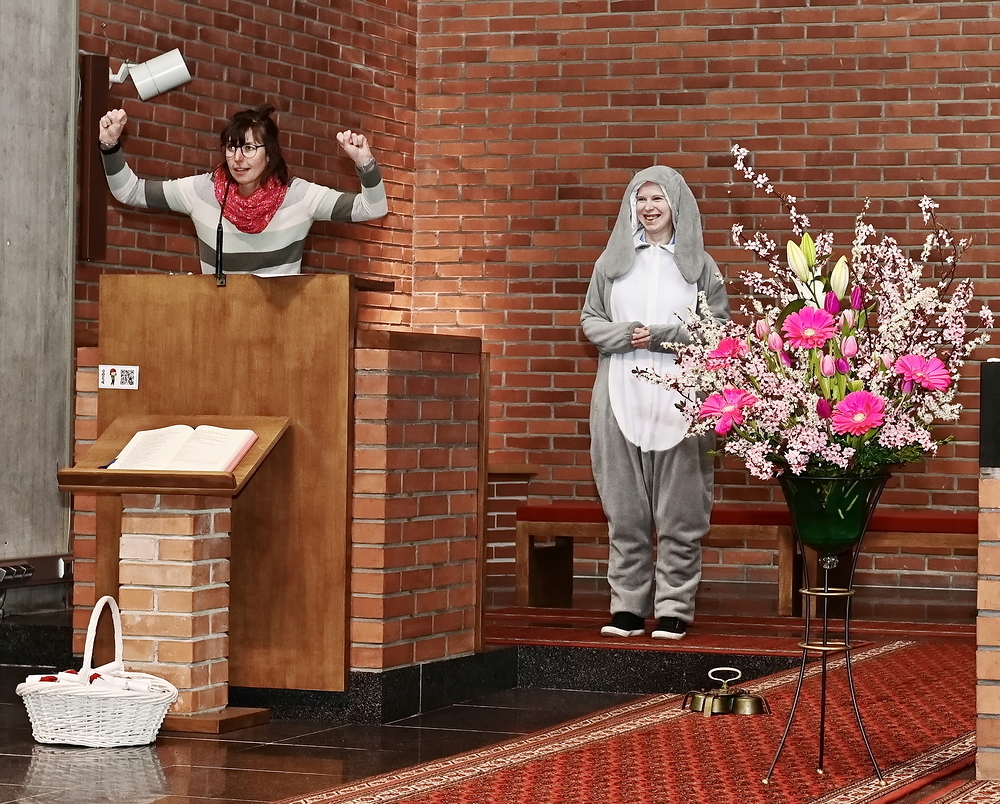 Zum Abschluss sangen und tanzten wir ein letztes Mal zum Lied „Stell dich in die Sonne“, bevor dann alle Kinder mit unserem Osterhasen Sabine auf der Pfarrwiese die versteckten Ostersüßigkeiten suchten.