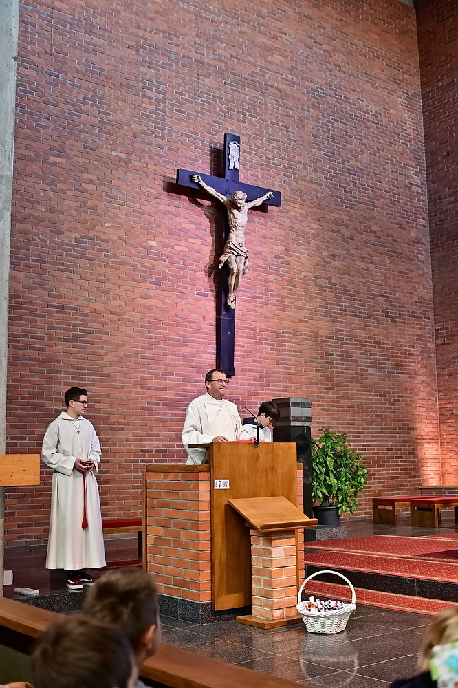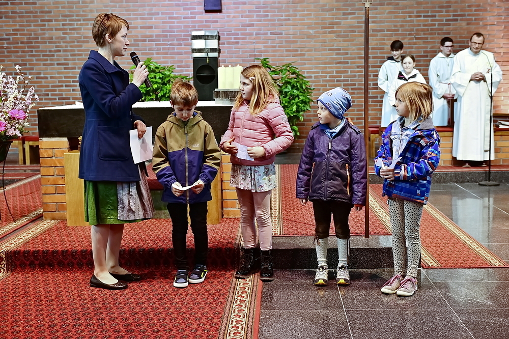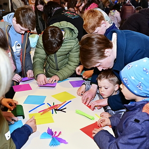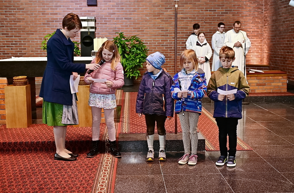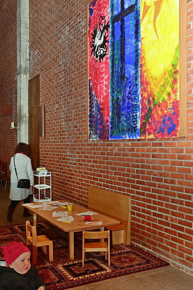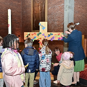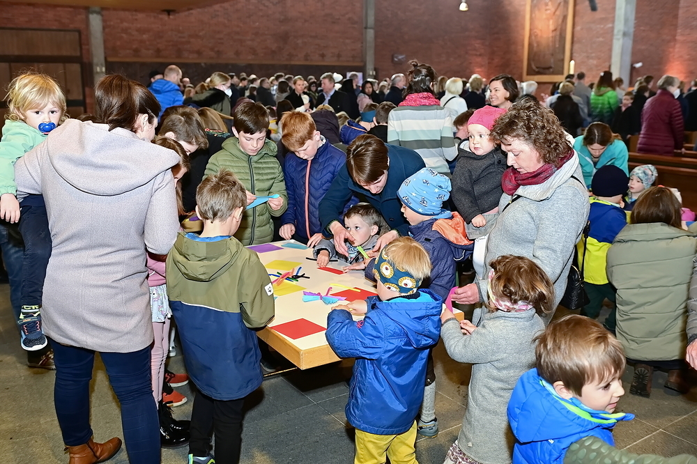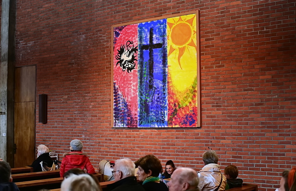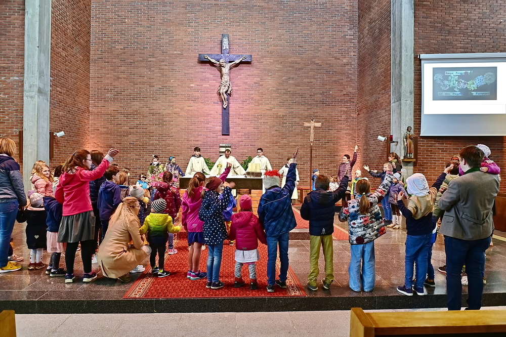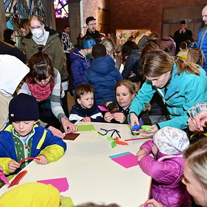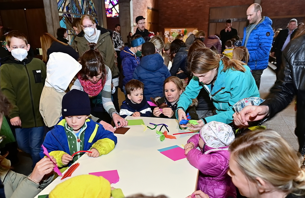 Während der Predigt durften alle Kinder noch einen bunten Schmetterling basteln und damit das Kreuz im Altarraum schmücken.