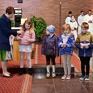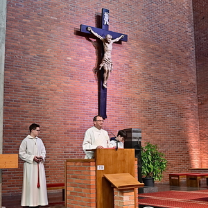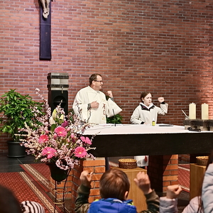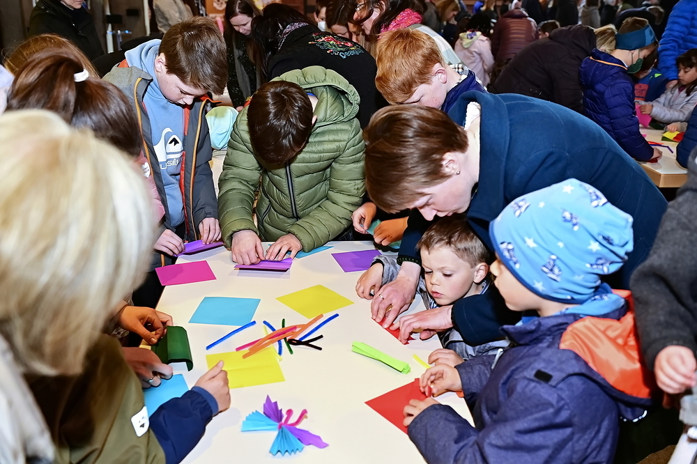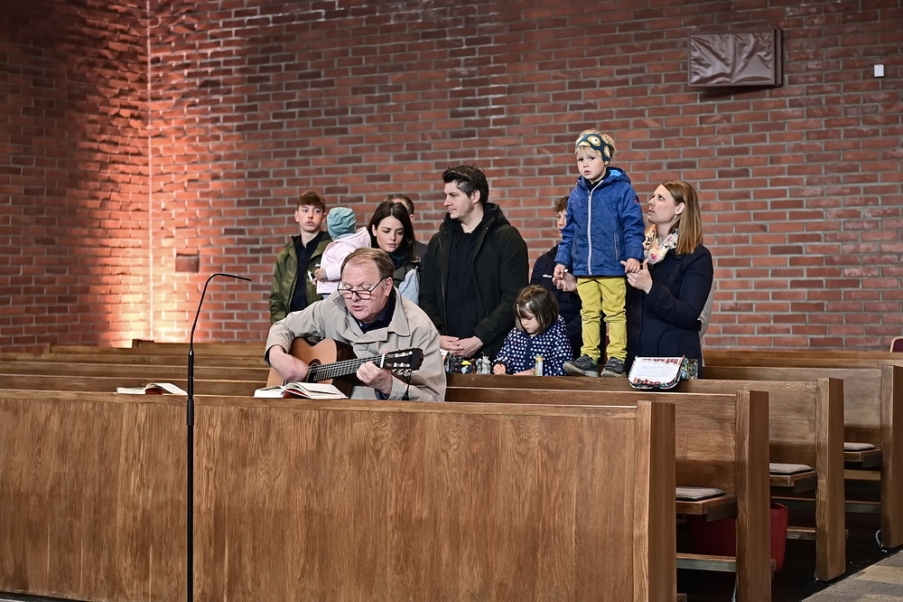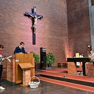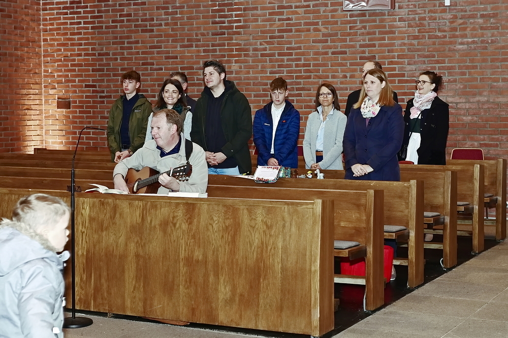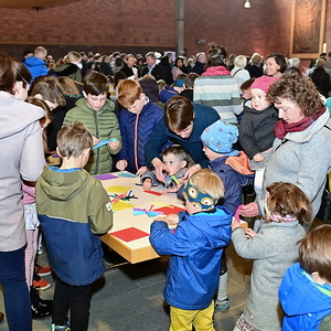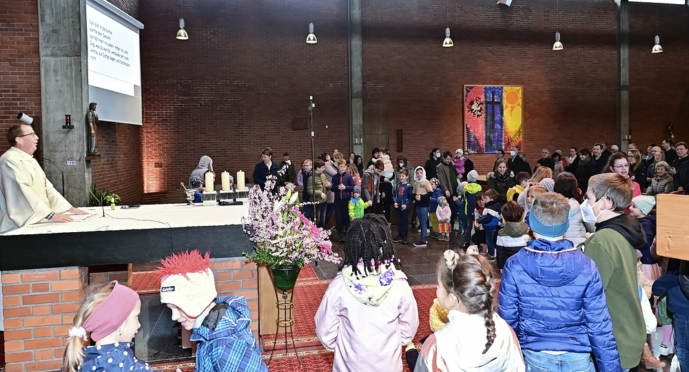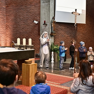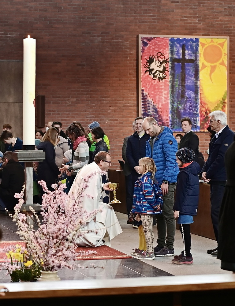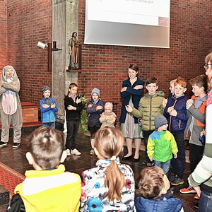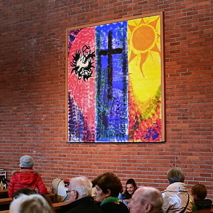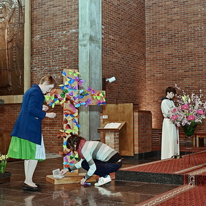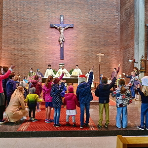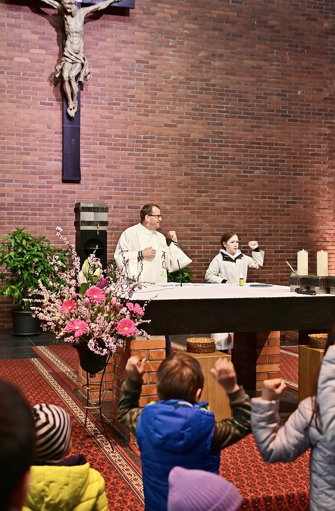 Während der Predigt durften alle Kinder noch einen bunten Schmetterling basteln und damit das Kreuz im Altarraum schmücken.