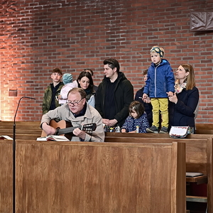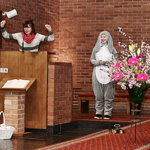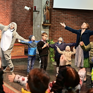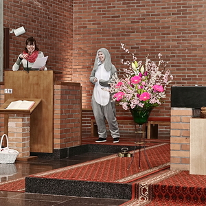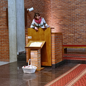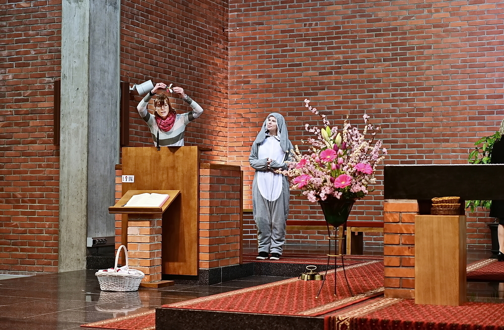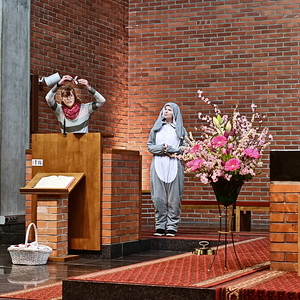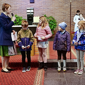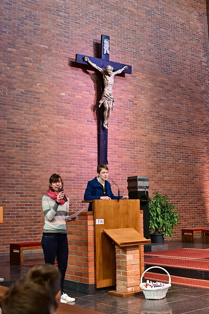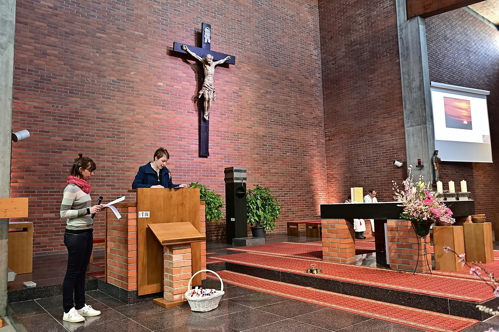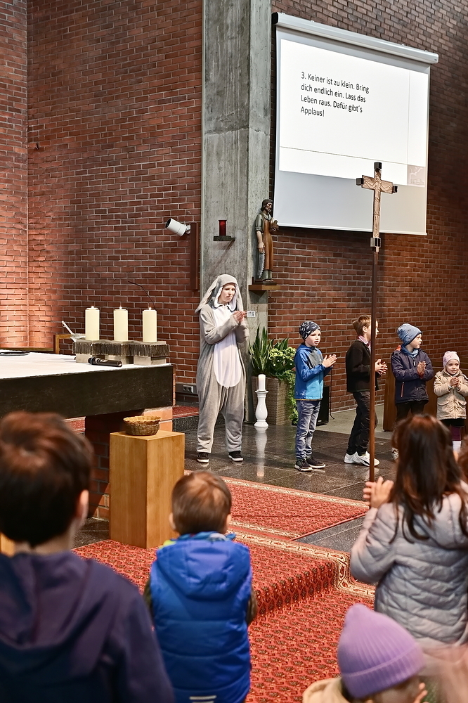 Während des Gottesdienst hörten wir die Geschichte von Mia, Theo und der Osterraupe.