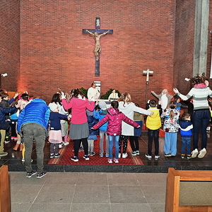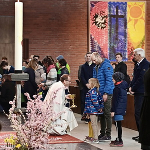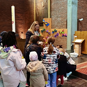 Während der ganzen Fastenzeit haben sich die Kinder jeden Sonntag eine bunte Perle in der Kirche abgeholt und damit eine Raupe gebastelt. Am Ostersonntag hat die Raupe Pasquarella Flügel bekommen und wurde ein Schmetterling.