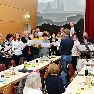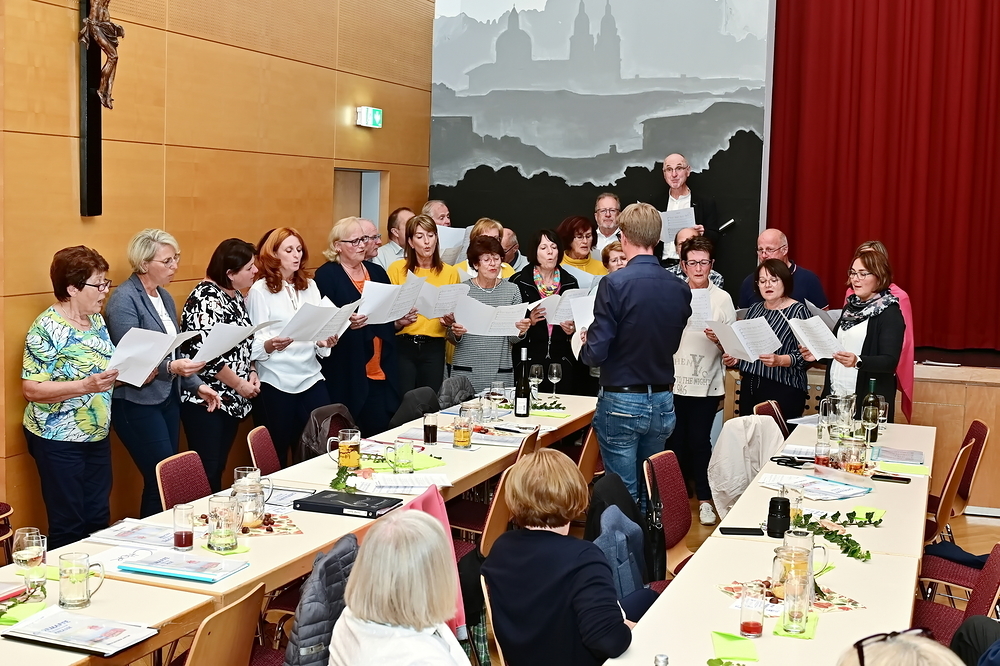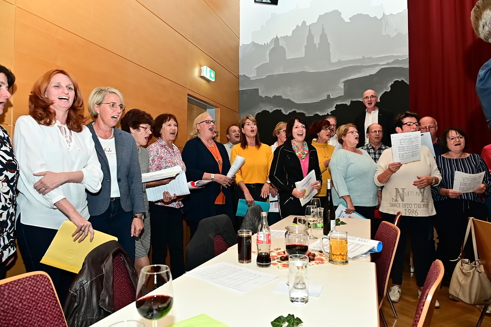 Im lange andauernden gemütlichen Beisammensein bei Essen und Trinken sorgte der Chor St. Josef mit heiteren Liedeinlagen für beste Stimmung, wozu auch die süße Nachspeise und das Angebot der Weinbar ihren Anteil leisteten.