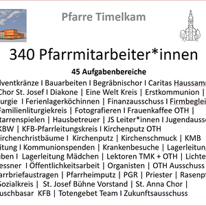 „Adventkränze I Bauarbeiten I Begräbnischor I Caritas Haussammleln | Chor St. Josef I Diakone | Eine Welt Kreis | Erstkommunion | FA Liturgie I Ferienlagerköchinnen | Finanzausschuss I Firmbegleitung | Familienliturgiekreis | Fotografieren I Frauenkaffee OTH | Gitarrenspielen | Hausbetreuer | JS Leiter*innen I Jugendausschuss | Kath. Bildungswerk | KFB-Pfarrleitungskreis I Kirchenchristbäume I Kirchenputz | Kirchenschmuck | KMB Leitung I Kommunionspenden | Krankenbesuche | Lagerleitung Buben I Lagerleitung Mädchen | Lektoren TMK + OTH | Lichterfest I Messner I Öffentlichkeitsarbeit | Organisten | OTH Ausschuss | Pfarrbriefaustragen | Pfarrheimputz | PGR | Priester | Rasenpflege | Reinigungsteam Treffpunkt Pfarre | Sozialkreis | St. Josef Bühne Vorstand | St. Anna Chor | Tauschbasar KFB | Totengebet Team I Zukunftsausschuss.“