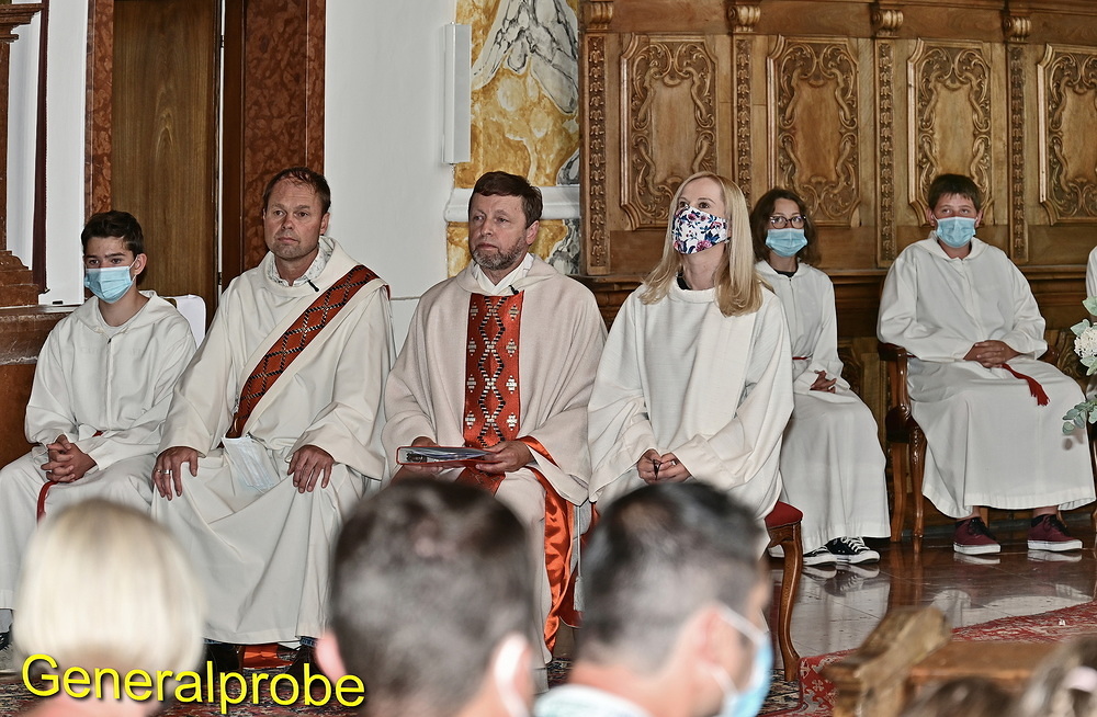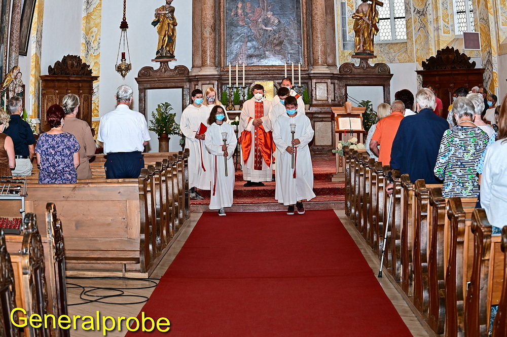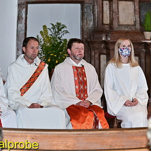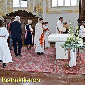Pünktlichst um 10:00 Uhr war es dann soweit: nach dem Vorspann mit Informationen über die Geschichte der St. Anna Kirche begann mit Pfarrer Hans Ortner, Diakon Bernhard Pfusterer und Pastoral-Assistentin Sabine Kranzinger die Festmesse.