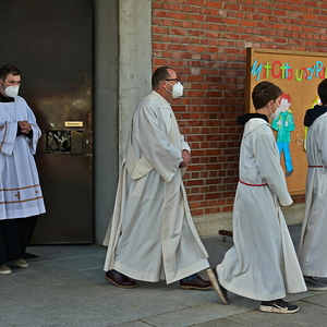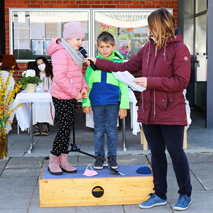 Der Gottesdienst hat bei kühlen Temperaturen, aber strahlendem Sonnenschein vor der Pfarrkirche stattgefunden und ganz viele Familien waren dabei und haben gemeinsam gefeiert.