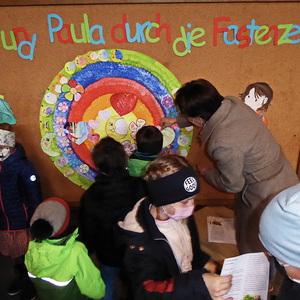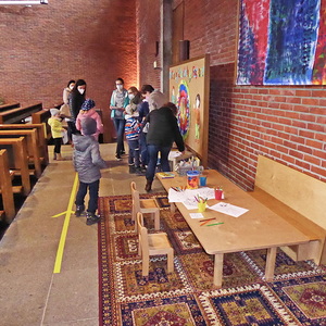 Am Ende des Gottesdienstes wurden wieder die Geschichten und Malvorlagen ausgeteilt. Am 5. Fastensonntag dürfen alle Kinder den bunt gestalteten Vogel zur Gestaltung des Mandalas mitbringen. (Runterladen von der Pfarrhomepage ist natürlich auch möglich)