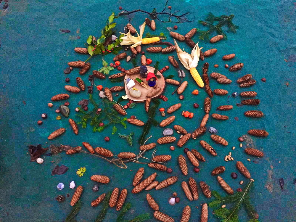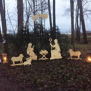 Der Stationenweg führte entlang der Bahnhofstraße und durch die Leiderer Au. Die Kinder und Erwachsenen waren eingeladen etwas mitzubringen z.B. Futter für die Tiere oder ein „Schmuckstück aus der Natur“ (Zapfen, Zweige,…) mit dem ein großes Mandala gelegt wurde. Bei den anderen Stationen konnten man etwas basteln, eine Geschichten lesen und sich gegenseitig segnen. Natürlich durfte eine große Krippe im Wald auch nicht fehlen!