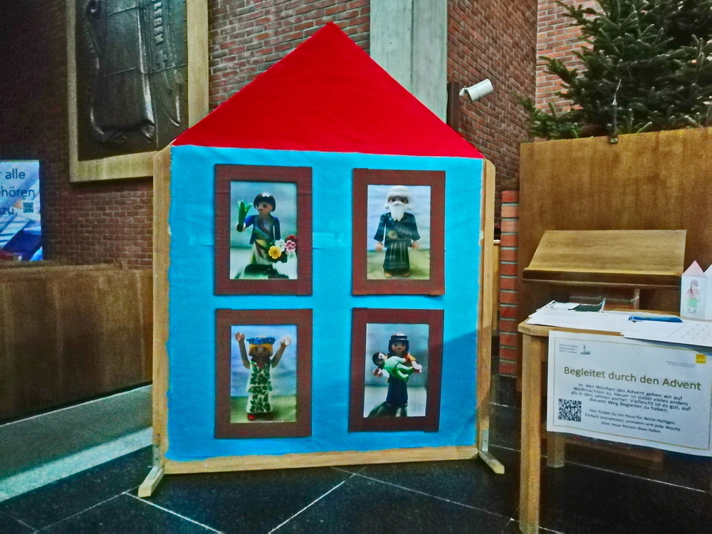 Im Advent haben wir in der Kirche unser Advent Haus aufgestellt und alle Kinder eingeladen, selber auch eines zu basteln. Jeden Sonntag – egal ob mit oder ohne Messe, haben wir ein Fenster im Advent Haus geöffnet und eine Heilige Person vorgestellt.