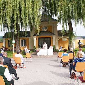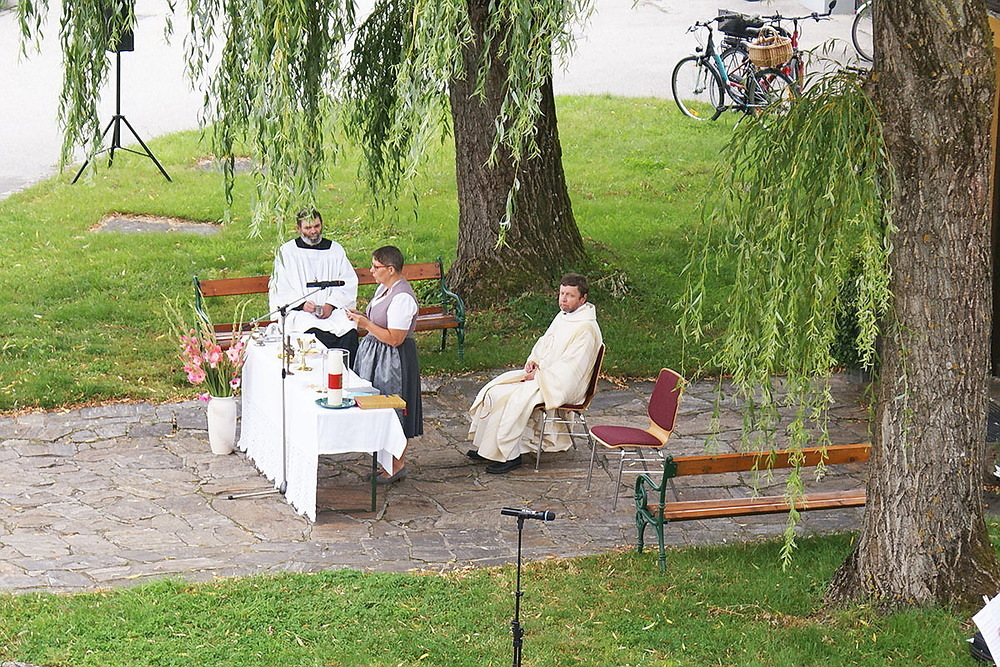 Und auf Grund dieser Flexibilität aller Beteiligten konnten wir heuer eine ganz besondere Messfeier abhalten, die im Freien, mit Mindestabstand und Einhaltung aller notwendigen Maßnahmen, die diese besonderen Zeiten erfordern, stattfand.