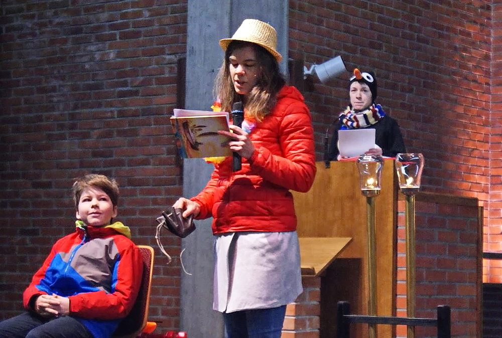 Statt der Lesung gab es eine Geschichte, ein Rollenspiel aus dem Land der Kinder.