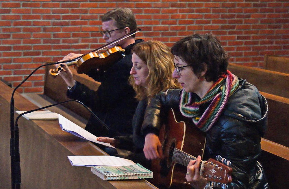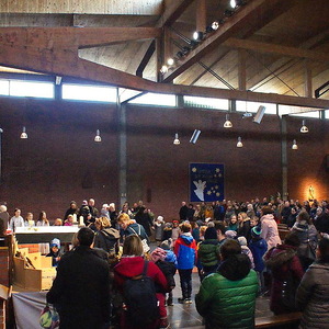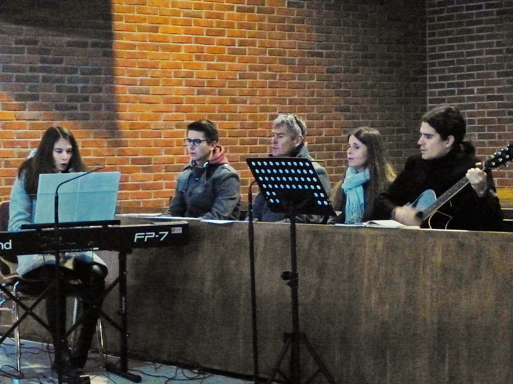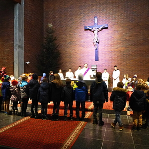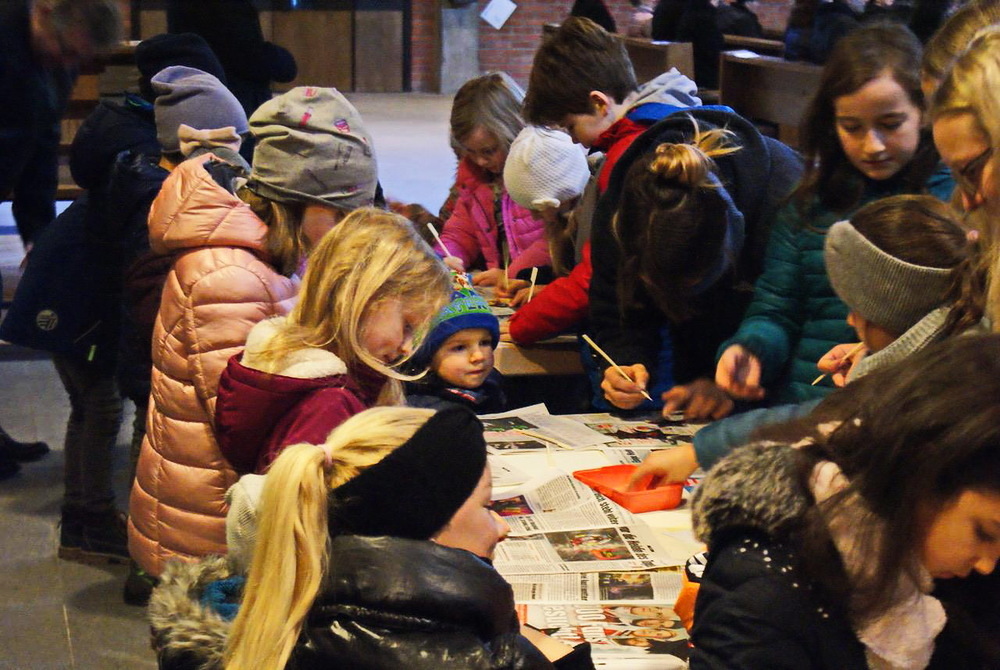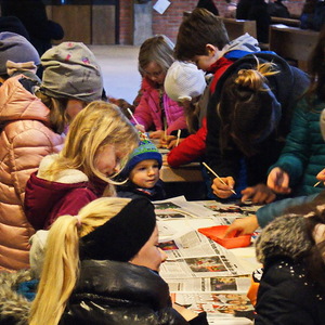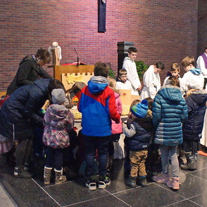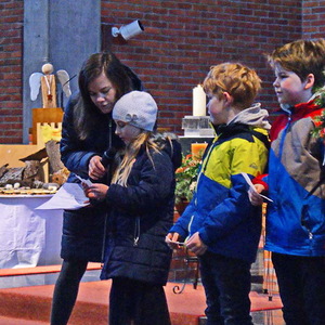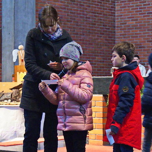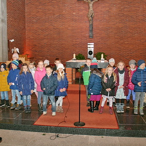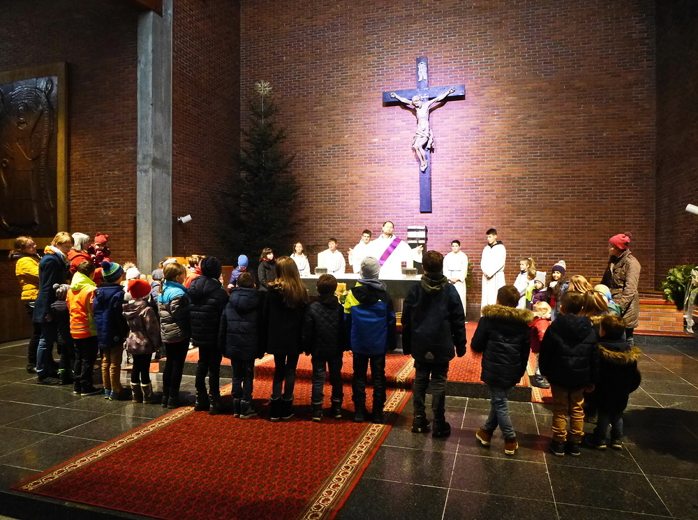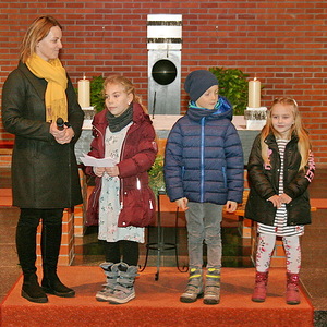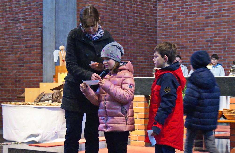 Die Familiengottesdienste sind immer sehr schön von den Musikern untermalt. Am dritten Adventsonntag ist auch zeitgleich die Kinderkirche. Zum Vater Unser kommen auch dann die kleineren Kinder dazu und dürfen ihren Stern bei der Grippe befestigen.