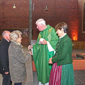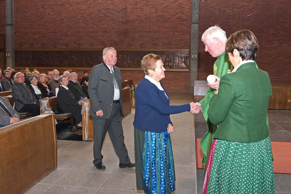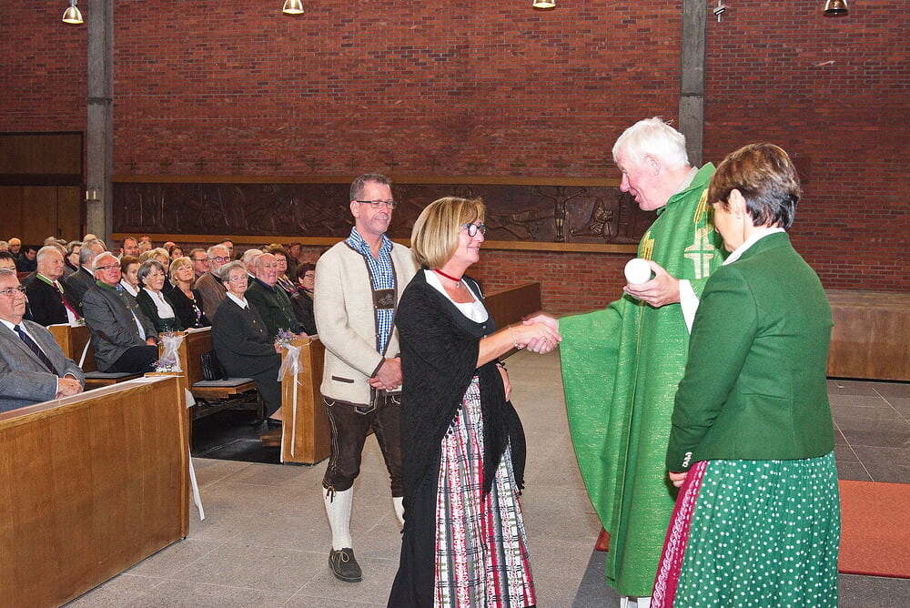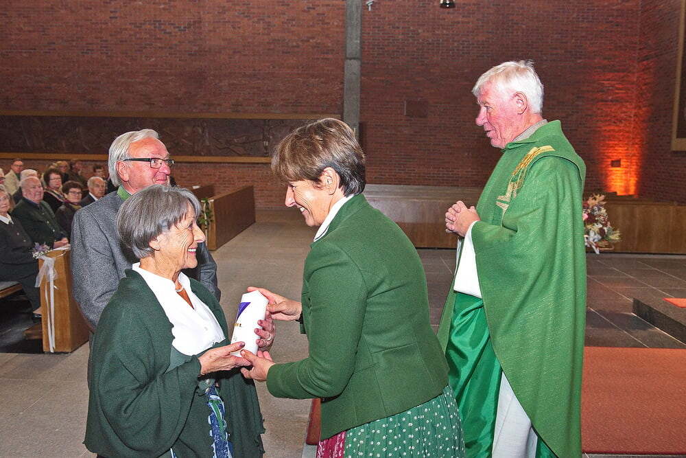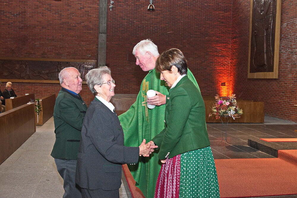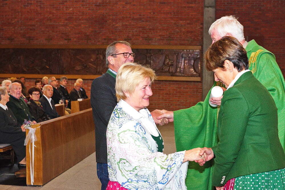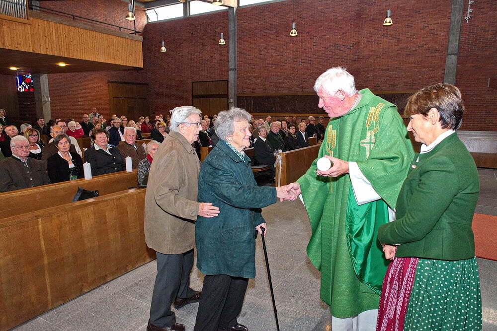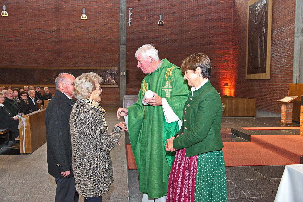 Abschließend wurde den Jubilaren von Goldhaubenobfrau Eva Wiesauer und Pfarrer Kramar eine Kerze mit den besten Wüschen für den weiteren gemeinsamen Lebensweg überreicht.